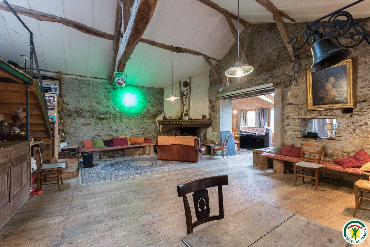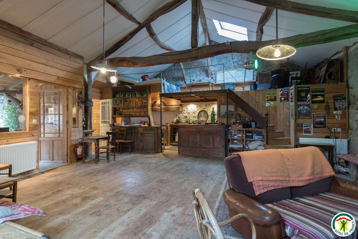 Une cour prolongée d’une terrasse vous permettront de profiter des beaux jours. Grande salle commune de 80m2 en face du gîte (cuisine, salon et cheminée). Restaurant à 50 mètres et lac de balade à 500 mètres.