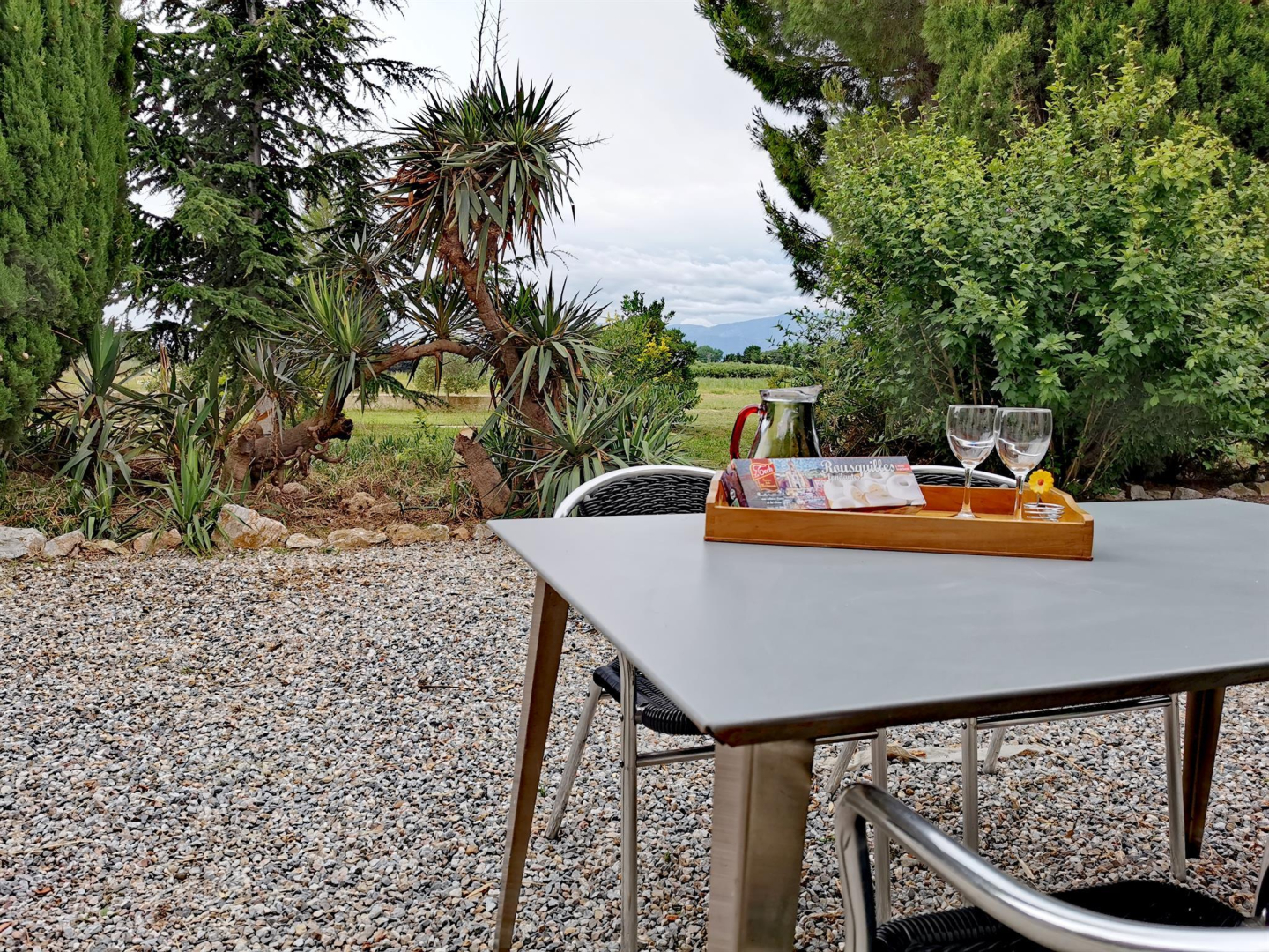 Accès : Depuis D914, dir.Théza (sortie n°5), traverser Théza, dir. Alenya, arrivé au christ, tourner à droite, passer légumes bio sur la droite. continuer tout droit. après 1 km tourner à gauche dir. petit mas blanc, après 2 maisons roses sur la gauche.