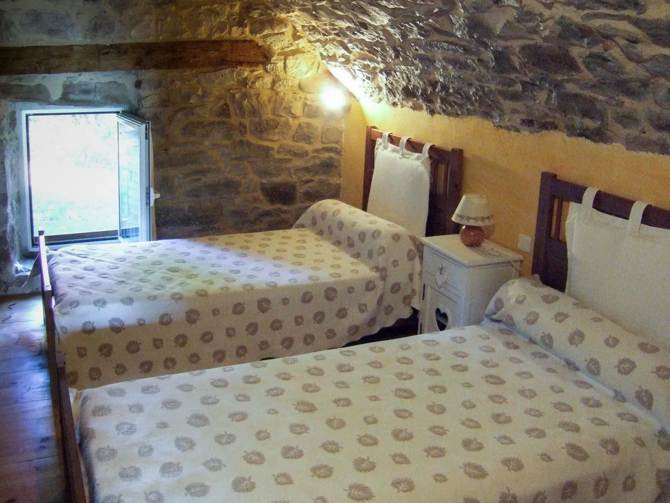 Gîte indépendant, sur 2 niveaux, dans un hameau. 2 chambres (1 lit 140, 2 lits 90). Salle d’eau. Coin cuisine (lave-vaisselle, lave-linge)/séjour (canapé, cheminée, télévision), chauffage central. Jardin clos (280 m²), terrasse (15 m²), salon de jardin, barbecue. Location de draps.