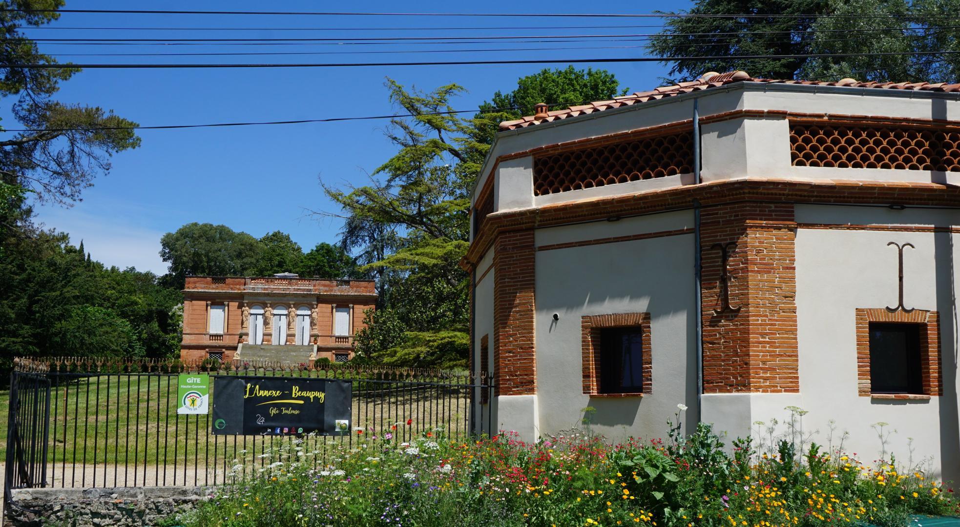 L’Annexe Beaupuy est un ancien pavillon marquant l’entrée dans une grande et belle propriété, en bordure de la route de Lavaur à Beaupuy. La maison de maître et le parc aux arbres centenaires sont visibles depuis le gîte mais ne sont pas accessibles. Le portail d’entrée ouvre sur une cour permettant le stationnement de plusieurs véhicules. L’Annexe est entourée d’une terrasse privative permettant de manger dehors aux beaux jours et de profiter du cadre de vie. Animaux non admis.