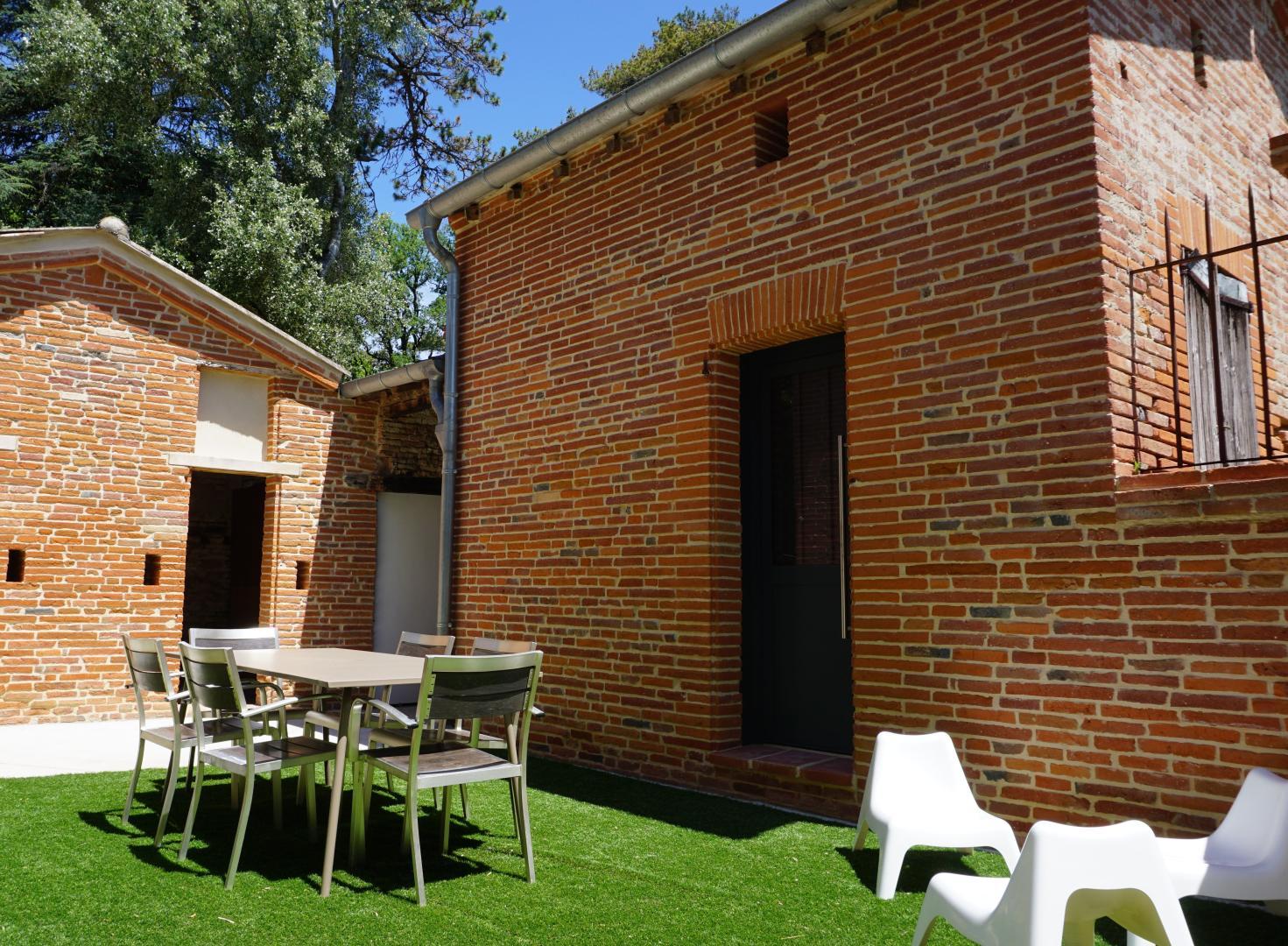 Pavillon de briques, récemment rénové à l’entrée d’une belle propriété de 1830 dessinée par Auguste Virebent, pour des vacances au vert, à seulement 15km de Toulouse !