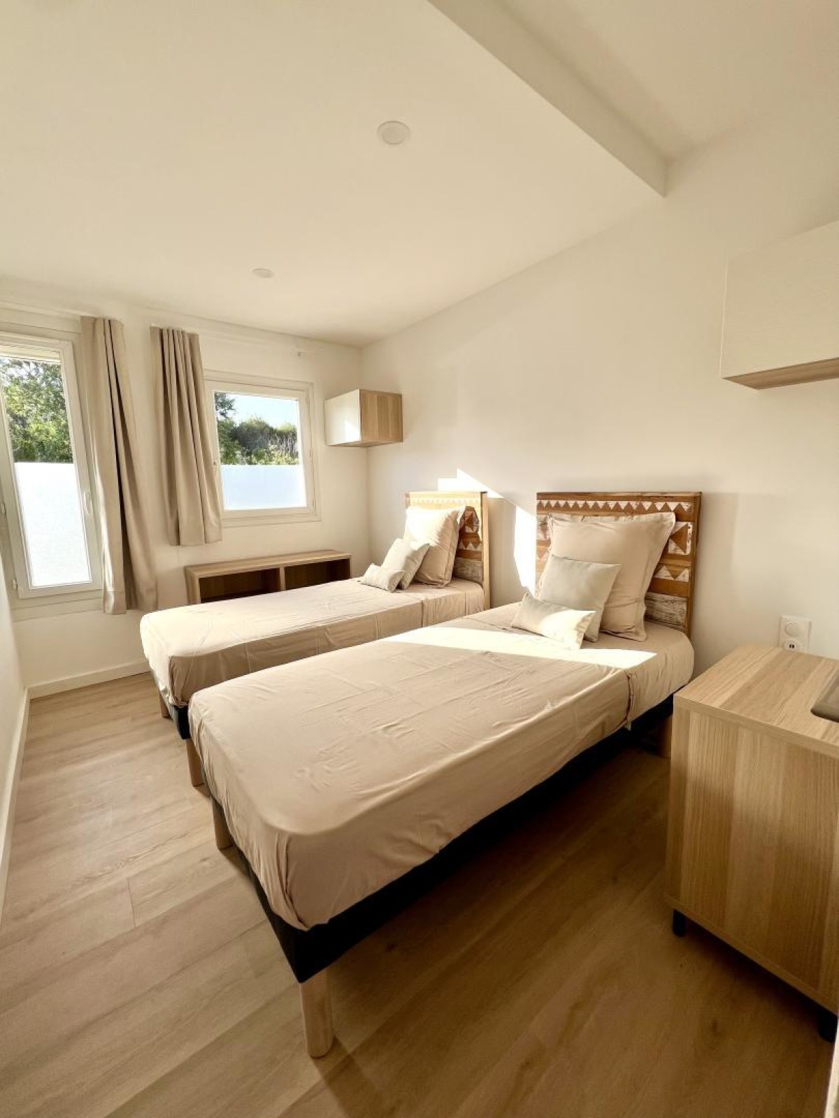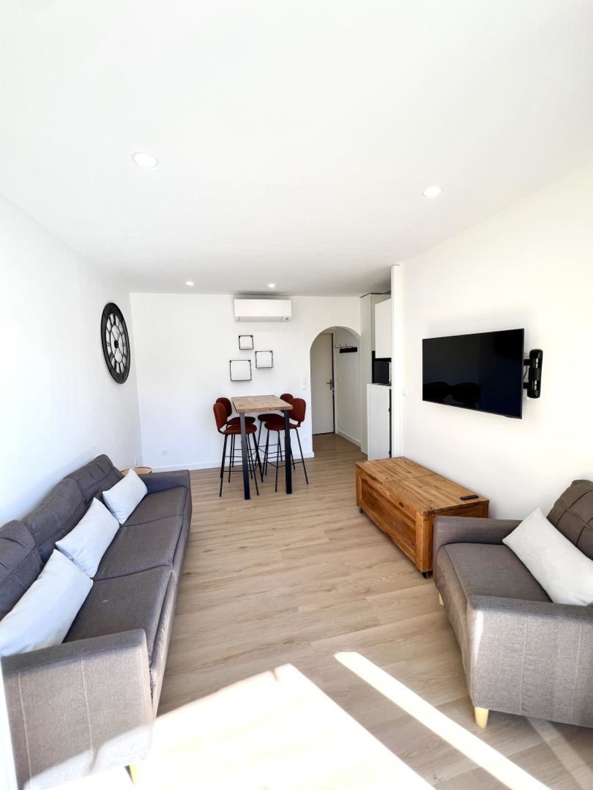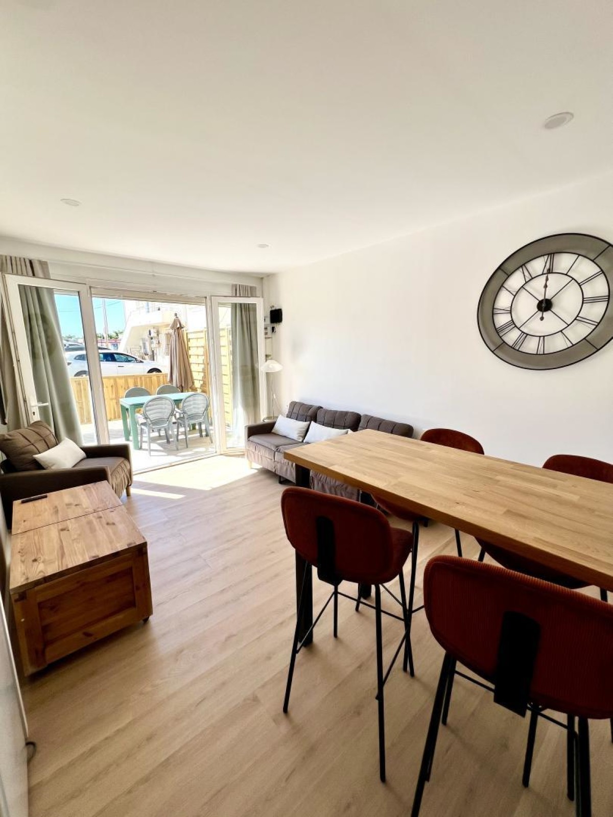 Situé à Narbonne-Plage, au pied du massif de la Clape, cet appartement offre un cadre privilégié pour découvrir le littoral audois. Vous profitez ici d’un environnement naturel remarquable, entre la Méditerranée toute proche et les paysages typiques du Narbonnais. Le site de l’Œil Doux, le port de plaisance et les sentiers balisés du Parc naturel régional vous permettront d’alterner baignades, balades et découvertes locales en toute simplicité. L’hébergement se trouve au rez-de-chaussée et propose une ambiance moderne d’inspiration méditerranéenne, parfaitement adaptée aux séjours en famille ou en télétravail. La pièce à vivre, lumineuse et ouverte, s’étend jusque sur la terrasse grâce à une large ouverture donnant vue sur le littoral. La cuisine ouverte est entièrement équipée : four, micro-ondes, plaque à induction, lave-vaisselle, réfrigérateur, congélateur, bouilloire et machine Nespresso. Deux chambres en suite avec salle d’eau (douche italienne) et des WC indépendants complètent les espaces de vie. Les deux chambres sont aménagées avec soin pour garantir confort et repos : • Chambre 1 : 1 lit 160×200, environ 10 m². • Chambre 2 : 2 lits 90×200. À l’extérieur, vous disposez d’une agréable terrasse équipée d’un salon de jardin, parfaite pour profiter du climat doux et des soirées au bord de la mer. Le stationnement est possible sur le parking public situé sur la placette, juste à proximité. Les charges sont incluses et le gîte bénéficie de la climatisation, appréciable en saison estivale. Avec la plage à seulement 50 mètres, ce logement constitue une adresse idéale pour combiner détente, activités nautiques et découverte d’un territoire riche en nature et en patrimoine.