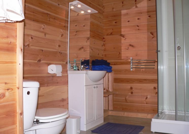 Entrée – salon – cuisine – 2 chambres – salle de bain avec douche et WC.