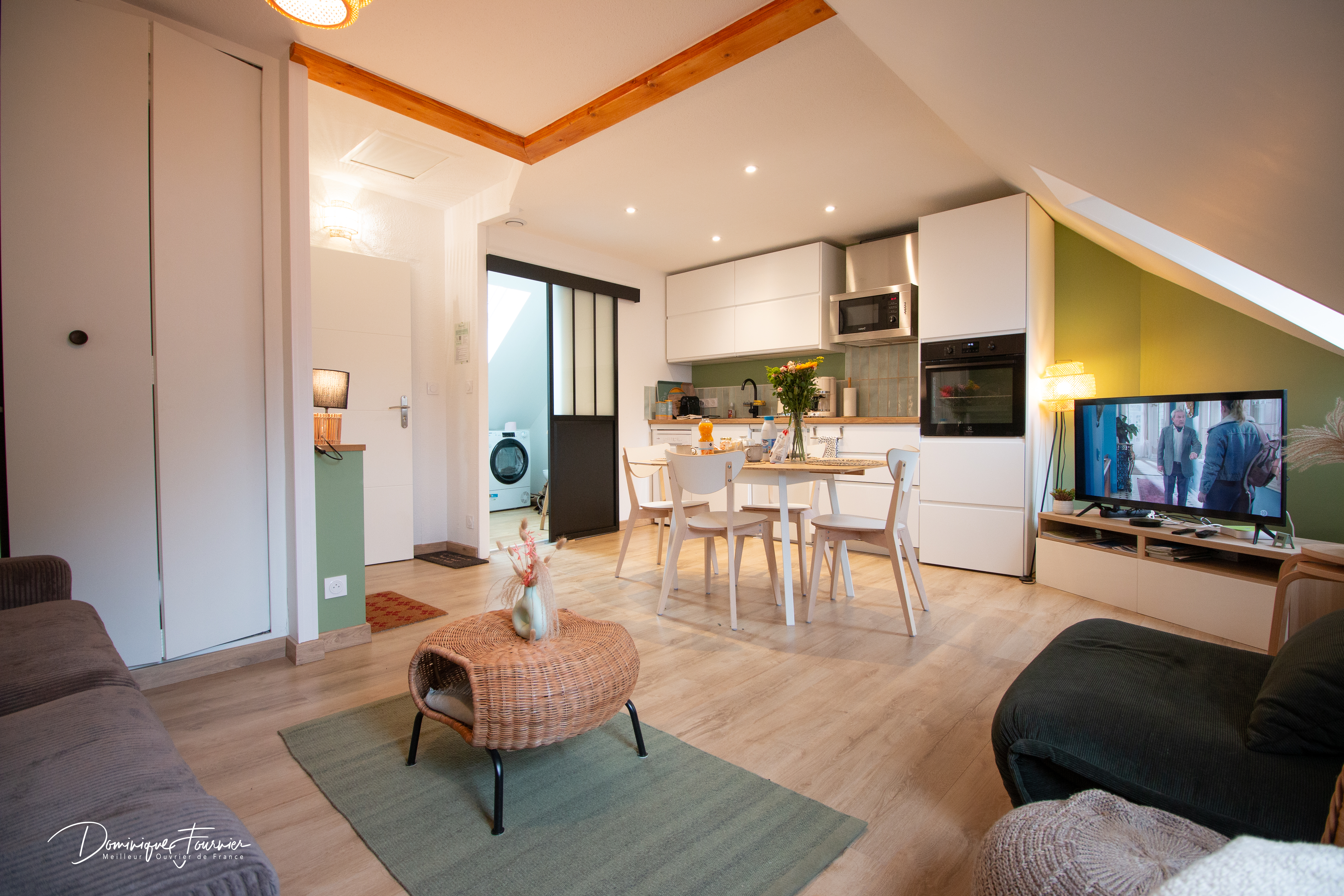 Studio au 3ème étage d’un immeuble résidentiel calme. Profitez d’une grande pièce à vivre avec un canapé convertible en 140, idéale pour se détendre après une journée bien remplie. La cuisine, entièrement équipée, vous permet de préparer vos repas comme à la maison, avec tout le nécessaire, du réfrigérateur au lave-vaisselle, en passant par la machine à café Nespresso. La salle d’eau. Wifi. Animaux acceptés.