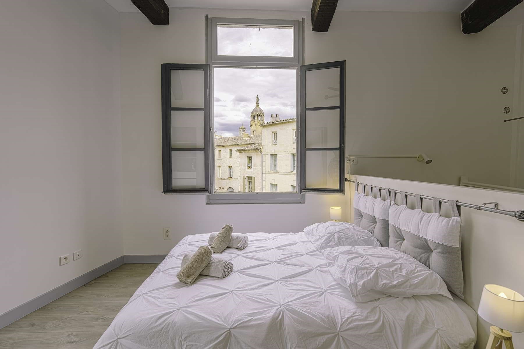 Chambre avec ses 2 fenêtres donnant sur le centre historique – © Libre de droit