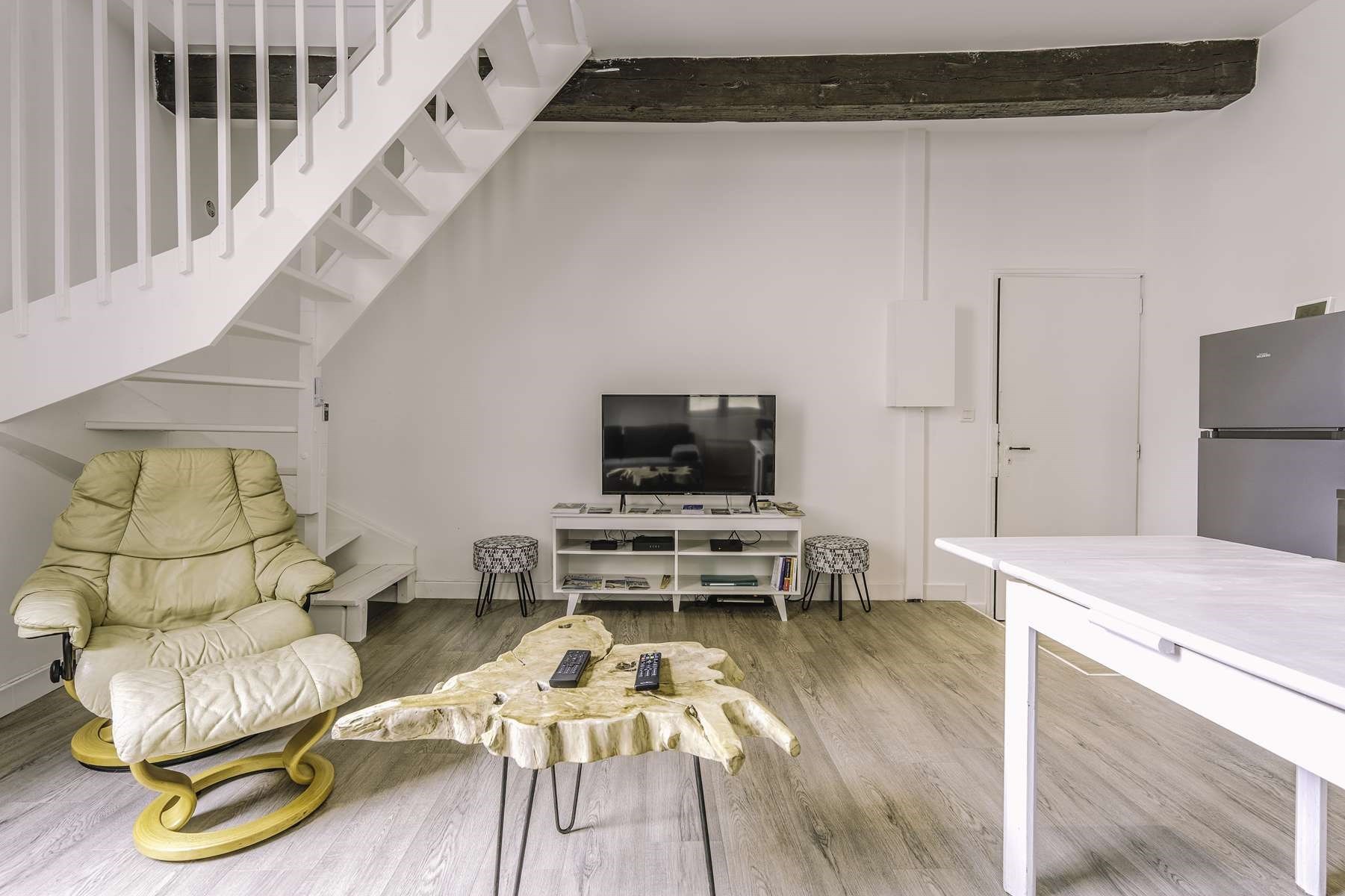 Élégant duplex lumineux niché au cœur historique d’Uzès. Séjour avec cuisine équipée, vaste chambre à l’étage avec salle d’eau et WC. Alliance parfaite du charme de l’ancien et du confort moderne pour un séjour d’exception.