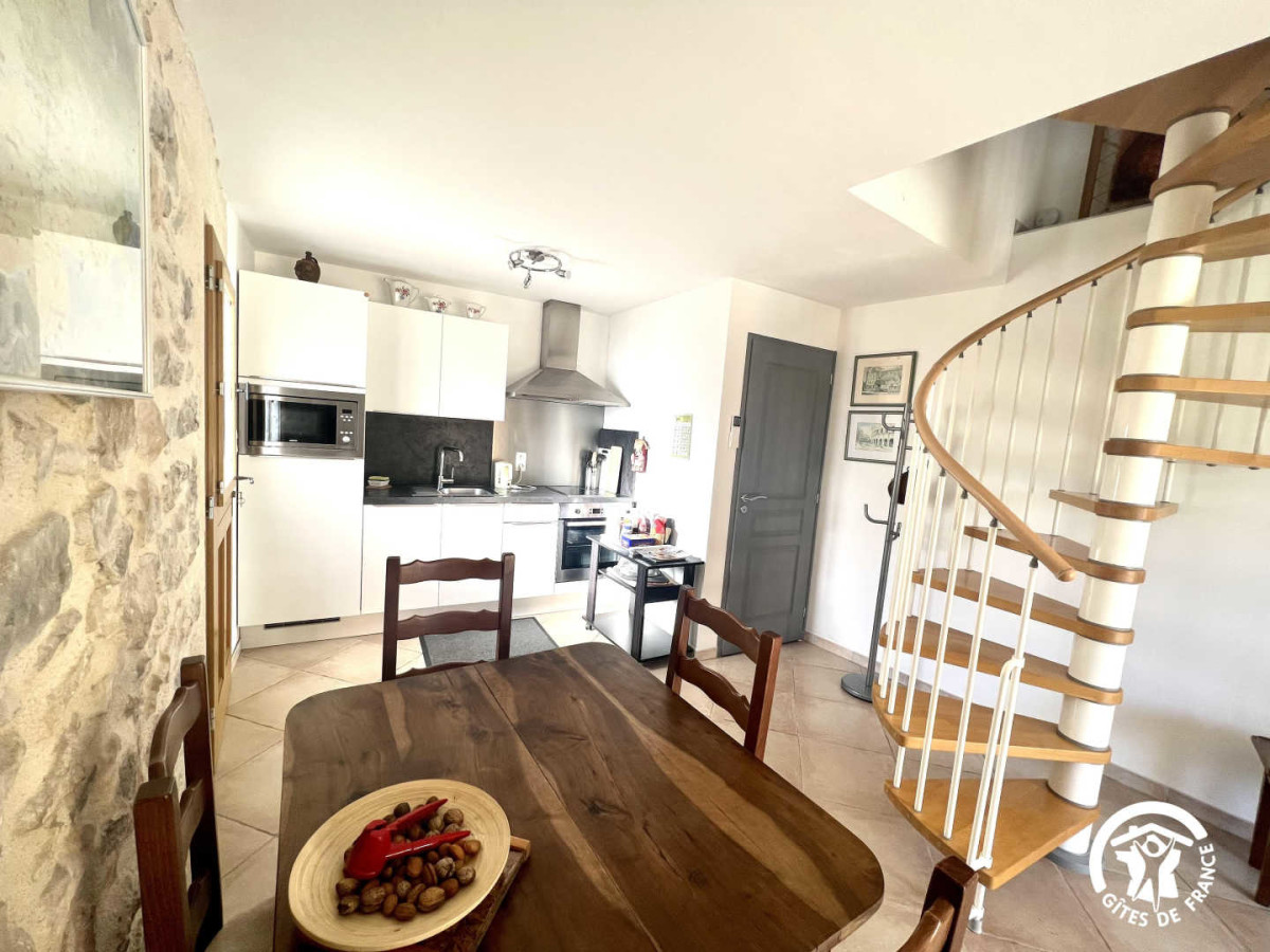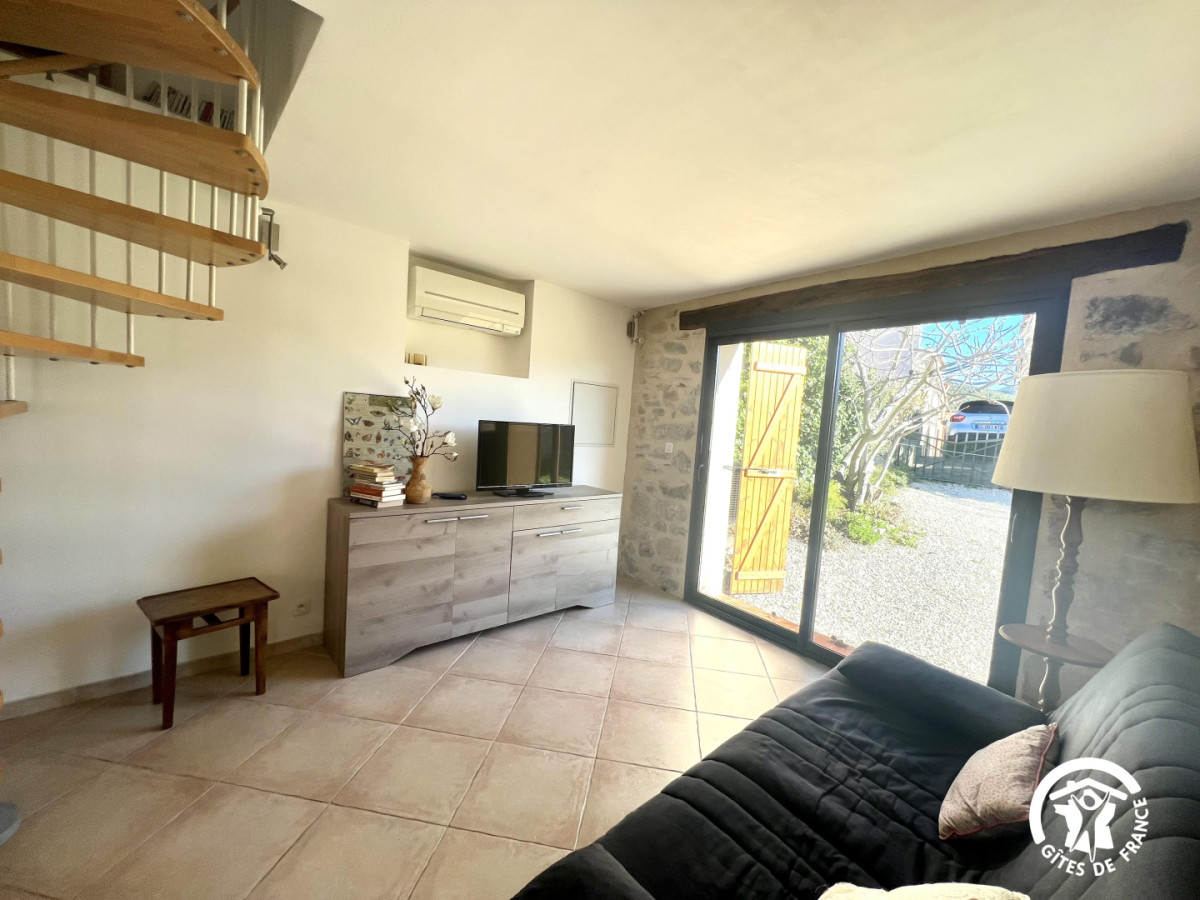 Cette ancienne écurie transformée en gite au style résolument moderne, dispose d’un jardin arboré attenant clos de 200m², et d’une terrasse avec pergola plein sud. Mobilier de jardin et pierrade à disposition. Ici l’environnement méditerranéen à perte de vue est idéal pour la balade pédestre ou VTT sur des sentiers escarpés et odorants de nos garrigues. Baignade en canyon et petit plan d’eau à 3km. Plages à 1h. Restaurants dans le village. Parking dans la propriété. Le gite dispose d’un séjour cuisine avec canapé convertible, WC. Accès à l’étage par un escalier hélicoïdal donnant sur un grand hall aménagé en coin nuit avec 1 lit 90. Chambre indépendante avec lit 160. Salle d’eau avec un wc et un local séparé. Climatisation réversible. Une borne électrique est accessible sur le parking camping car du village.