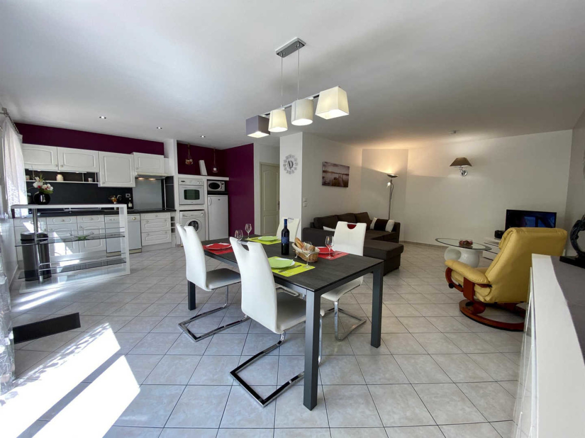 Le gite est mitoyen avec le gite N°2218 séparé par une petite murette. Petit terrain attenant non clos fleuri, avec barbecue. parking attenant ombragé. Village animé avec tous commerces.. 2 points WIFI gratuits sur le village (place du village et médiathèque à 20 m du gîte). Gîte neuf, avec un grand séjour-cuisine (cafetière à filtre) climatisé, donnant par une large baie vitrée, sur la terrasse. 2 chambres avec 1 lit de 160 et 2 lits 90, une salle d’eau avec un WC indépendant. Chauffage électrique (en supplément).