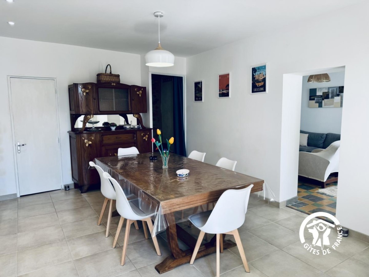 Vous séjournerez au cœur du Pays Cathare, dans le petit village de Trassanel haut lieu de la spéléologie audoise avec ses nombreuses cavités à découvrir, situé à 6 km de Villeneuve-Minervois où se trouvent tous les commerces, une pharmacie, une médiathèque et la Maison de la Truffe d’Occitanie, où vous découvrirez le musée et l’histoire fascinante du diamant noir ainsi que la boutique de produits truffés, et à 25 km de l’aéroport de Carcassonne. Sentier de la truffe sur le village (18km balisés). Le lac de la Prade, à 30 minutes. Vous serez proche des sites touristiques : la Cité de Carcassonne, le Canal du Midi, la grotte de Limousis, le gouffre géant de Cabrespine, l’Abbaye et les carrières de marbre de Caunes-Minervois, les 4 châteaux de Lastours, Minerve. Le gîte est un lieu idéal pour un séjour de repos, de détente et de découverte. Depuis le village, vous partirez sur de nombreux sentiers de randonnée pédestre (GR36) et VTT qui vous permettront de découvrir la nature sauvage de la Montagne Noire. Baignades surveillées au lac de Pradelles-Cabardès, à la piscine « Les Bains de Minerve » à Peyriac-Minervois à 30 minutes maximum, ou à la mer Méditerranée à 75 km (environ 1h20). Sur place, vous profiterez de la terrasse (espace clos et privatif) avec son salon de jardin et barbecue. Au rez-de-chaussée, vous profiterez d’une cuisine équipée (Micro-ondes – Four – Lave-vaisselle – Lave-linge – Plaque vitrocéramique 3 feux – Réfrigérateur/Congélateur) donnant sur la terrasse, un espace salon avec téléviseur, un WC indépendant. Au premier étage: _2 chambres avec 1 lit en 140. _1 chambre avec 1 lit en 90. _Salle d’eau. _WC indépendant. Équipement bébé (lit parapluie, chaise haute). Possibilité de garer une voiture dans le gîte ou de stationner sur un terrain privatif juste en face. Gite proposé en version 10 personnes sous la référence 11G3131.