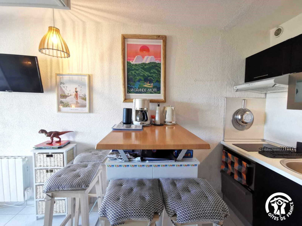Détendez-vous en regardant la télévision sur le canapé du séjour, un canapé convertible en un lit de bonne qualité de dimensions 140×190 cm. La cuisine est une cuisine tout équipée où vous retrouverez tout le nécessaire : réfrigérateur, four, micro-ondes, lave-vaisselle, cafetière, machine à café expresso, bouilloire… Le gîte l’Escale dispose également d’une salle d’eau avec une douche, une grande vasque avec miroir, ainsi qu’un WC. Dans l’entrée du gîte, deux lits d’appoint une place (par exemple pour des enfants) sont aussi mis à disposition, ainsi qu’une machine à laver dans le placard de l’entrée. Ce studio, qui possède deux entrées (une dans la résidence et une côté plage), dispose du Wifi. Caution ménage supplémentaire (pour les personnes ne prenant pas l’option ménage): 70€ Attractions touristiques : Profitez de votre séjour au gîte l’Escale pour vous rendre sur les célèbres plages de sable fin de la Grande Motte, à seulement 200 mètres à pied du studio. Vous pourrez y bronzer au soleil, vous balader à la couchée du soleil au son des vagues, pratiquer des activités nautiques comme le jet-ski ou la planche à voile, faire une partie de beach-volley ou encore vous baigner ! Profitez également de votre séjour à la Grande Motte pour faire une balade sur le port de plaisance et admirer les yachts et bateaux de pêche ou s’arrêter dans un des nombreux restaurants et cafés de la promenade. A une quinzaine de kilomètres, visitez aussi la station balnéaire de Palavas-les-Flots, une ville animée, célèbre pour son phare (où vous pourrez vous arrêter pour déguster de bons petits plats), ses plages et son casino. Et à seulement une vingtaine de kilomètres, découvrez la cité médiévale fortifiée d’Aigues-Mortes, une ville au riche patrimoine historique, et offrez-vous des balades sur les remparts de la cité !