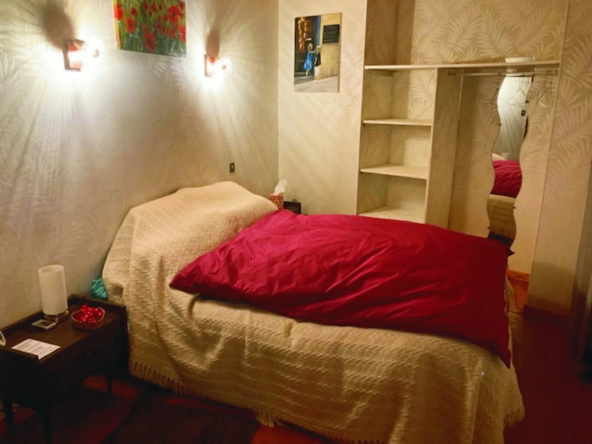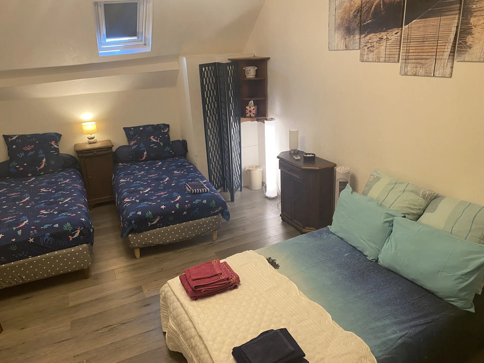 La grande chambre : 1 lit double et 2 lits simples – 150 €/nuit – appeler pour réserver cette chambre, réservation : https://airbnb.com/h/escapade-de-jos ou 0681535770