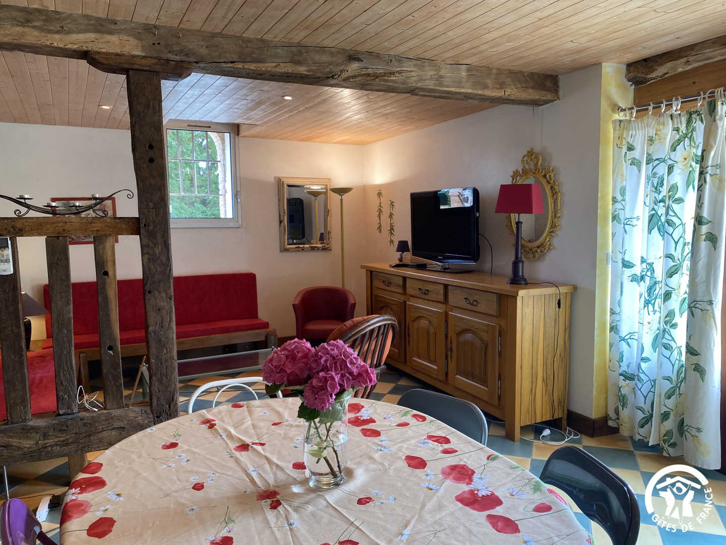 Le gite a été créé dans une partie de l’ancienne étable. Surface de 120 m² sur trois niveaux. Au rez-de-chaussée, cuisine équipée, séjour, cellier WC. Au 1er étage une chambre ( lit double 160×200 ) 1chambre avec 2 lits (90×190), salle d’eau (douche à l’italienne), WC . Au second, une chambre (lit double 160 x 200) avec salle d’eau et WC, petit salon avec canapé BZ.