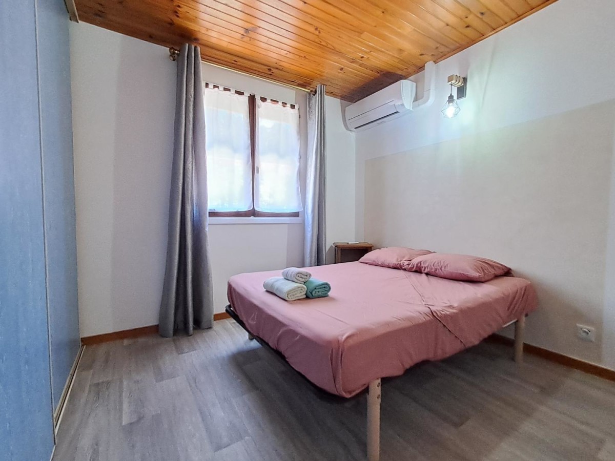Situé à Portel-des-Corbières, au cœur du littoral audois, ce gîte vous invite à découvrir une région riche en contrastes. À quelques minutes, la Réserve Africaine de Sigean vous plonge dans un univers sauvage, tandis que la cave Terra Vinea vous dévoile les secrets des vins des Corbières dans une ancienne galerie souterraine. Narbonne, ville d’art et d’histoire, vous attend avec ses vestiges romains, son canal de la Robine et sa célèbre cathédrale Saint-Just-et-Saint-Pasteur. Les amoureux de nature apprécieront les balades dans les garrigues environnantes, entre senteurs de thym et vues sur les étangs. Le gîte, de plain-pied, est mitoyen à un autre hébergement mais dispose d’un jardin clos et privatif. Il offre une ambiance traditionnelle et méditerranéenne, propice au repos. Vous y trouverez une cuisine ouverte entièrement équipée (four, micro-ondes, plaque à induction, lave-vaisselle, réfrigérateur, congélateur, bouilloire, cafetières à filtre et Senseo), un salon avec coin télévision, une salle d’eau avec douche et des toilettes indépendants. Les chambres: Chambre 1 : 1 lit double standard (140×190), superficie 9 m² Chambre 2 : 1 lit double standard (140×190), superficie 9 m² À l’extérieur, vous profiterez d’une terrasse couverte et ombragée, équipée d’un salon de jardin et d’un barbecue, idéale pour les repas en plein air. Le stationnement est facile grâce à un parking public situé juste devant le gîte. La climatisation, présente dans le logement, garantit un confort optimal en toute saison. Les charges sont incluses dans le tarif. Ce gîte est particulièrement adapté aux séjours en famille, dans un environnement calme et naturel. Arrivée en toute autonomie dans le gîte (Consignes transmises par la conciergerie).