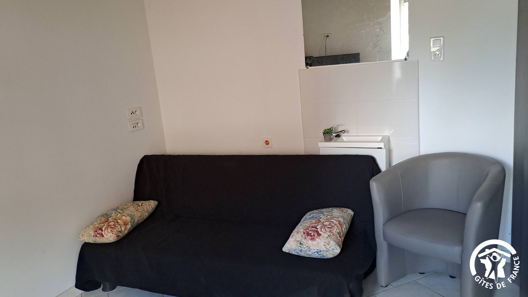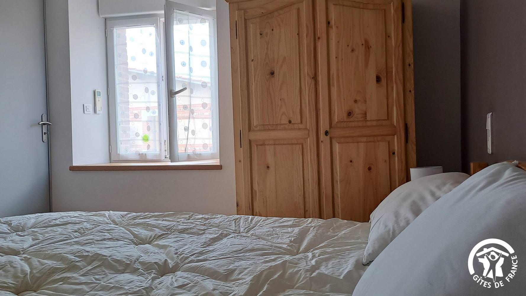 On accède au gîte par une cour, le propriétaire habite en face, dans la cour on peut garer la voiture, installer salon de jardin et barbecue