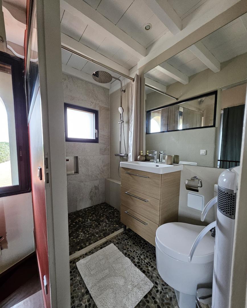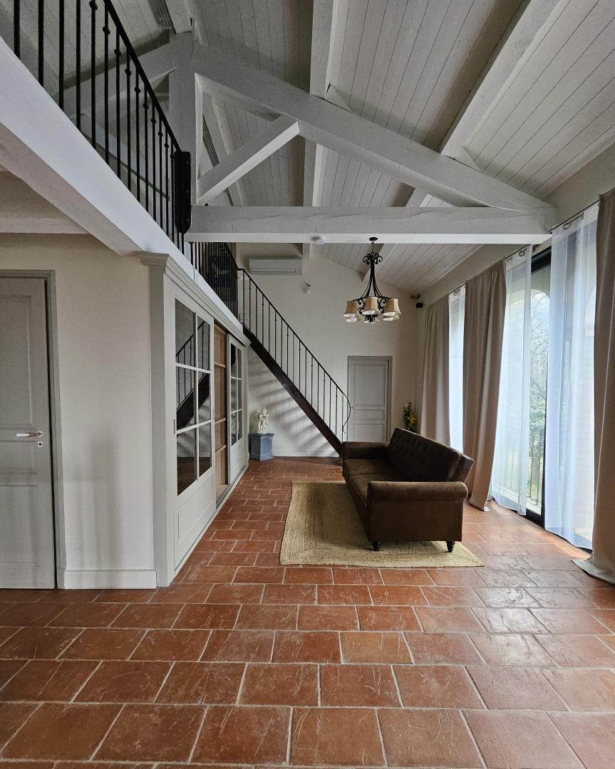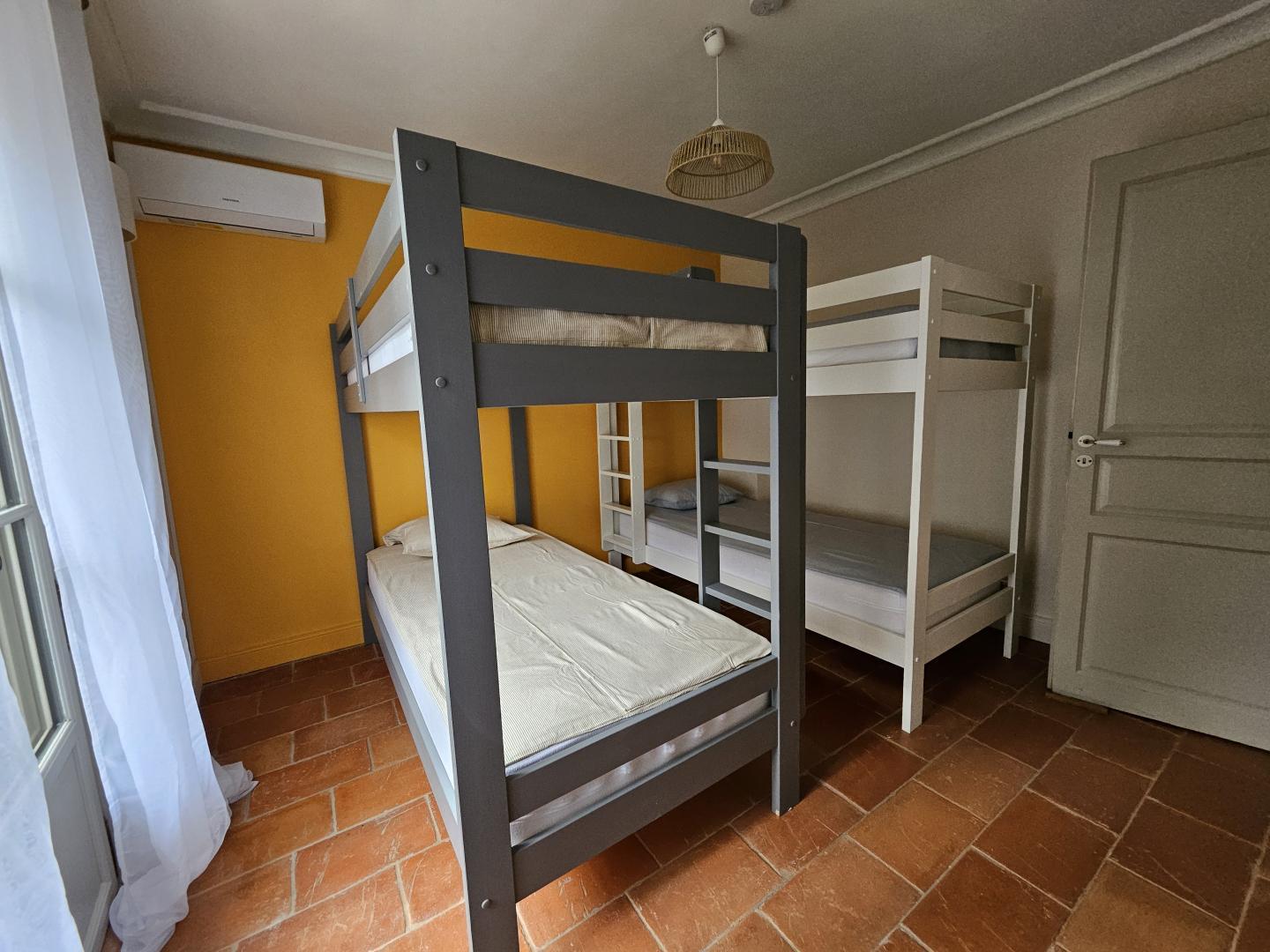 Entre mer et vignobles, dans la nature, cette magnifique bâtisse datant du XIXème siècle, qui abritait jadis des écuries, a été entièrement rénovée et décorée avec goût par les propriétaires, tout en préservant les contraintes architecturales. Accès au gîte, par l’extérieur par quelques marches : Hall d’entrée Quelques marches au rez de chaussée desservent : Une cuisine équipée avec mange-debout Un grand séjour avec cheminée décorative, salon, salle à manger, séjour avec TV donnant à l’arrière sur le jardin privatif non clos équipé d’un salon de jardin, d’une plancha électrique 1er niveau : Salon avec TV, chaine hi-fi et belle vue sur le jardin chambre : 1 lit 180 x 200, salle d’eau, wc chambre : 2 lits superposés de 2 pers : 90 x 200 Salle d’eau Wc 2ème niveau : chambre mezzanine : 1 lit 180 x 200 Avec espace communicant mansardé qui peut accueillir, dans un espace « dodo », 3 enfants à partir de 7 ans : 3 lits 90 x 190 Salle d’eau avec wc. Parking dans la propriété.