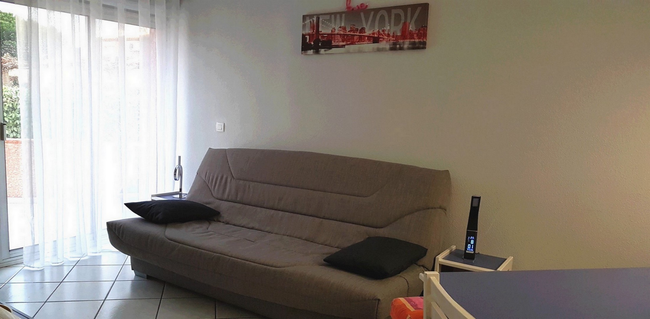 Villa cosy climatisée d’environ 40 m² pour 6 personnes au sein d’une résidence de tourisme 3 étoiles « Les Jardins de Neptune ». Piscine commune ( ouverture de mi- juin à mi septembre ), aire de jeux pour enfants, adultes et grands espaces pour la promenade. La résidence se situe à 300 m de la plage, des commerces et restaurants. La villa se compose : d’une pièce de vie avec téléviseur écran plat, canapé convertible, grande baie vitrée donnant sur la terrasse. Une cuisine ouverte entièrement équipée ( lave vaisselle, réfrigérateur congélateur, mini four, micro onde,..) , d »une chambre avec un lit en 140, une salle d’eau avec douche à l’italienne et wc.