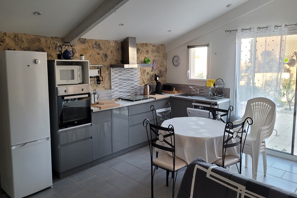Le gîte s’ouvre sur une belle pièce de vie avec un salon, cuisine et salle à manger, le tout dans une ambiance chaleureuse grâce aux murs en pierre. Le coin salon dispose d’un meuble de rangement en bois, d’un canapé, d’une table basse ainsi que d’une télévision, parfait pour vous détendre devant une série, pour lire un livre ou pour jouer à un jeu de société à quatre ! Cuisine tout équipée (four, micro-ondes, réfrigérateur avec congélateur, lave-vaisselle, machine à café expresso, bouilloire, grille-pain…). Le gîte dispose également d’une chambre avec un lit double 140×190 cm, ainsi qu’une grande armoire en bois et une commode. Cette chambre dispose aussi de sa salle d’eau douche, vasque avec miroir et WC séparé. Le gîte possède également une buanderie où vous retrouverez la machine à laver du gîte. A l’extérieur, vous pourrez profiter d’un jardin sec joliment aménagé par les propriétaires, avec un salon de jardin qui vous permettra de profiter du soleil de l’Hérault ! Le gîte dispose également d’un espace pour ranger des vélos ainsi que d’une place de parking privative dans la cour du gîte. Couvertures en supplément (25€ à régler directement auprès du propriétaire). Les serviettes de toilette ne sont pas fournies. Supplément pour l’électricité et l’eau au delà de 2kw/pers/jour (selon le tarif en vigueur). Attractions touristiques : A Roujan, flânez dans les ruelles étroites et pittoresques de la vieille ville et découvrez son patrimoine architectural. A 4 minutes en voiture du gîte, visitez le somptueux château de Cassan, un palais du XVIIIème siècle surnommé le Petit Versailles du Languedoc. Abbaye de Valmagne (25 km). Pézenas (10km), célèbre pour son riche patrimoine culturel, architectural et ses artisans. A 30km, découvrez le lac du Salagou, un magnifique lac offrant une multitude d’activités de plein air ainsi que des sentiers de randonnées avec des vues à couper le souffle sur les paysages environnants.