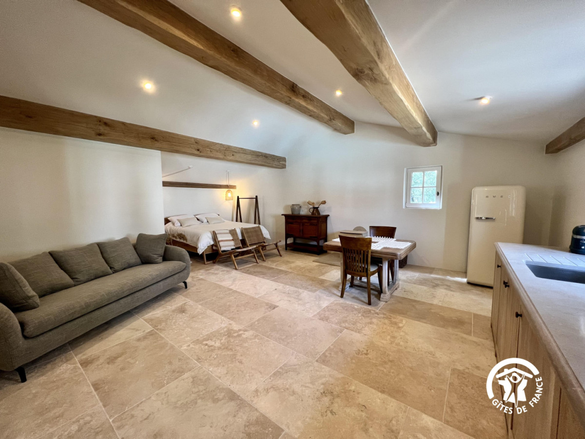 Vous êtes aux portes de Carcassonne et de sa célèbre Cité Médiévale. La localisation du gîte vous offre la possibilité de visiter plusieurs lieux incontournables comme le Canal du Midi classé au patrimoine mondial de l’UNESCO ou encore le village du livre de Montolieu ou d’emprunter le circuit des capitelles d’Aragon. Au départ du gîte vous partirez à la découverte des nombreux sentiers de promenades dans les garrigues qui entourent le village. Les propriétaires passionnés de leur territoire, vous feront découvrir les métiers d’Oleiculteur et Trufficulteurs, et vous proposerons des produits de leur production. Sur place vous profiterez de la terrasse couverte avec salon de jardin et plancha à disposition. Piscine commune (8×8 m profondeur 1.30 m) à l’eau salée et chauffée. Le gîte se trouve sur une propriétée de 5000 m², que vous partagerez avec les propriétaires et une chambre d’hôtes bien indépendante. De plein pied, un séjour-cuisine avec un couchage en 180×200 et poêle à bois (bois fourni), salle d’eau avec WC (douche à l’italienne). L’ensemble donne sur la terrasse couverte et sur le jardin. Ce gîte est aussi disponible en saison estivale en version 4 personnes avec une 2e chambre indépendante (de l’autre coté de la piscine) avec un lit en 180×200 et disposant de sa salle d’eau et son W.C. (L’Oliveraie 4 personnes ref. 11G3297).