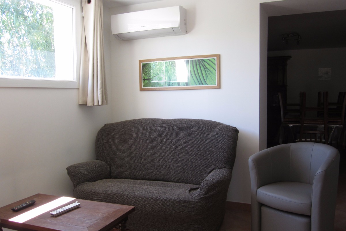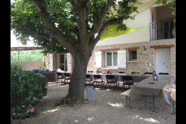Aux portes de Pézenas, à la campagne et à la ville, ces 3 logements entièrement rénovés en 2014 composent le Jardin de Marraine. Situés à 5 min à pied du centre-ville de Pézenas, Ville d’Art et d’Histoire, et de l’Office de Tourisme, vous aurez l’avantage d’être en campagne, tout en étant tout près des commerces, des restaurants. Vous pourrez profiter des nombreux événements culturels et spectacles proposés par la Ville sans avoir à prendre la voiture. L’Olivier est un appartement situé au rez de chaussée, de 70 m² pour 3 personnes. Télévision, Chaîne Hi-Fi, Lecteur DVD, Cafetière classique à filtres, bouilloire électrique, friteuse électrique, Micro-onde, Réfrigérateur, Combiné-congélation, aspirateur, sèche-cheveux, fer et table à repasser, Lave-vaisselle, climatisation réversible, Détecteur de fumée, Extincteur d’incendie, 2 lave-linge communs aux autres logements. Chambre Indépendante : 1 lit de 140cm + 1 lit d’appoint de 90cm. Terrasse, Piscine partagée avec les deux autres logements du Jardin de Marraine, idem trampoline et portique, salon de jardin, Jardin commun, Paysager, Clos, Barbecue. Stationnement privé, Boulodrome commun avec les deux autres logements du Jardin de Marraine, Baby-foot. Location groupée en famille ou entre amis avec les deux autres logements en Haute Saison mais hors Haute Saison, il peut être loué soit avec le Figuier, soit avec le Tilleul.