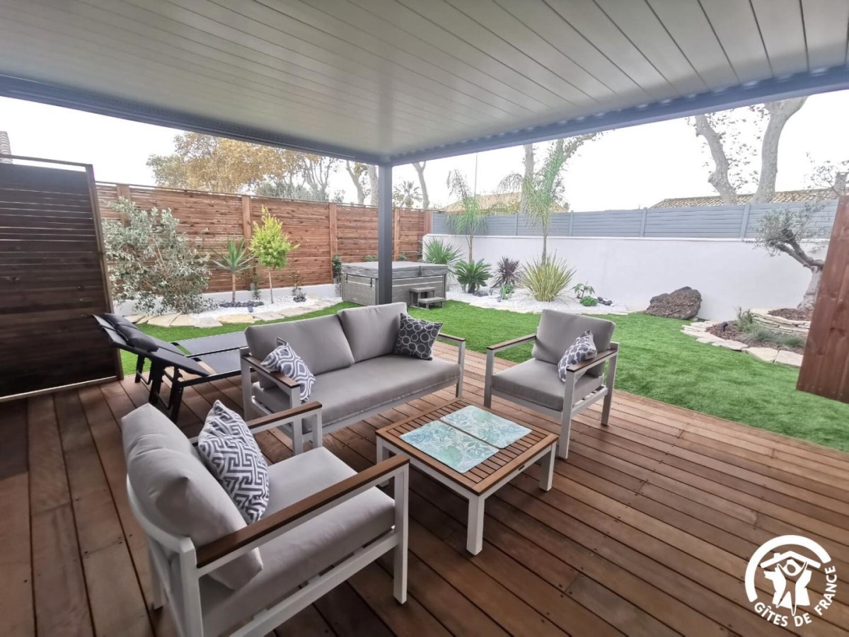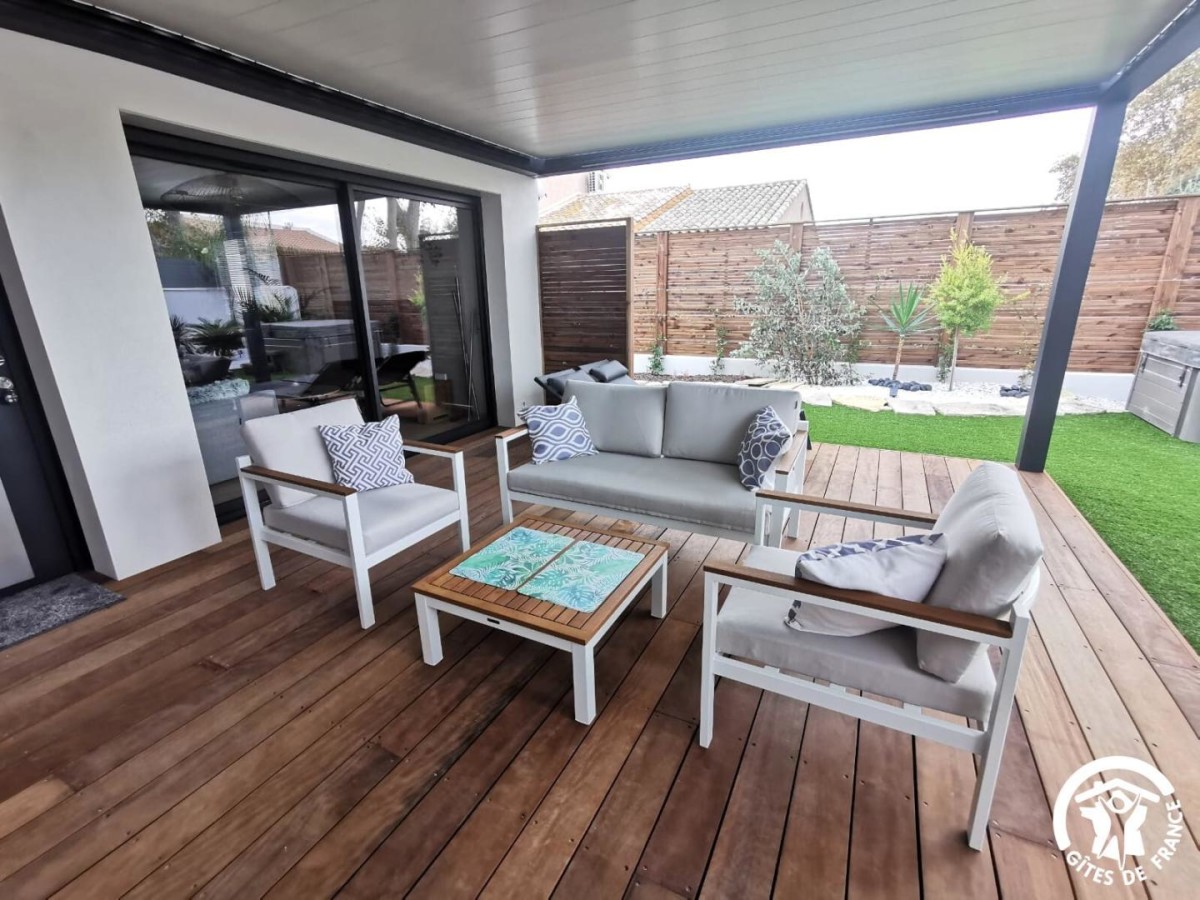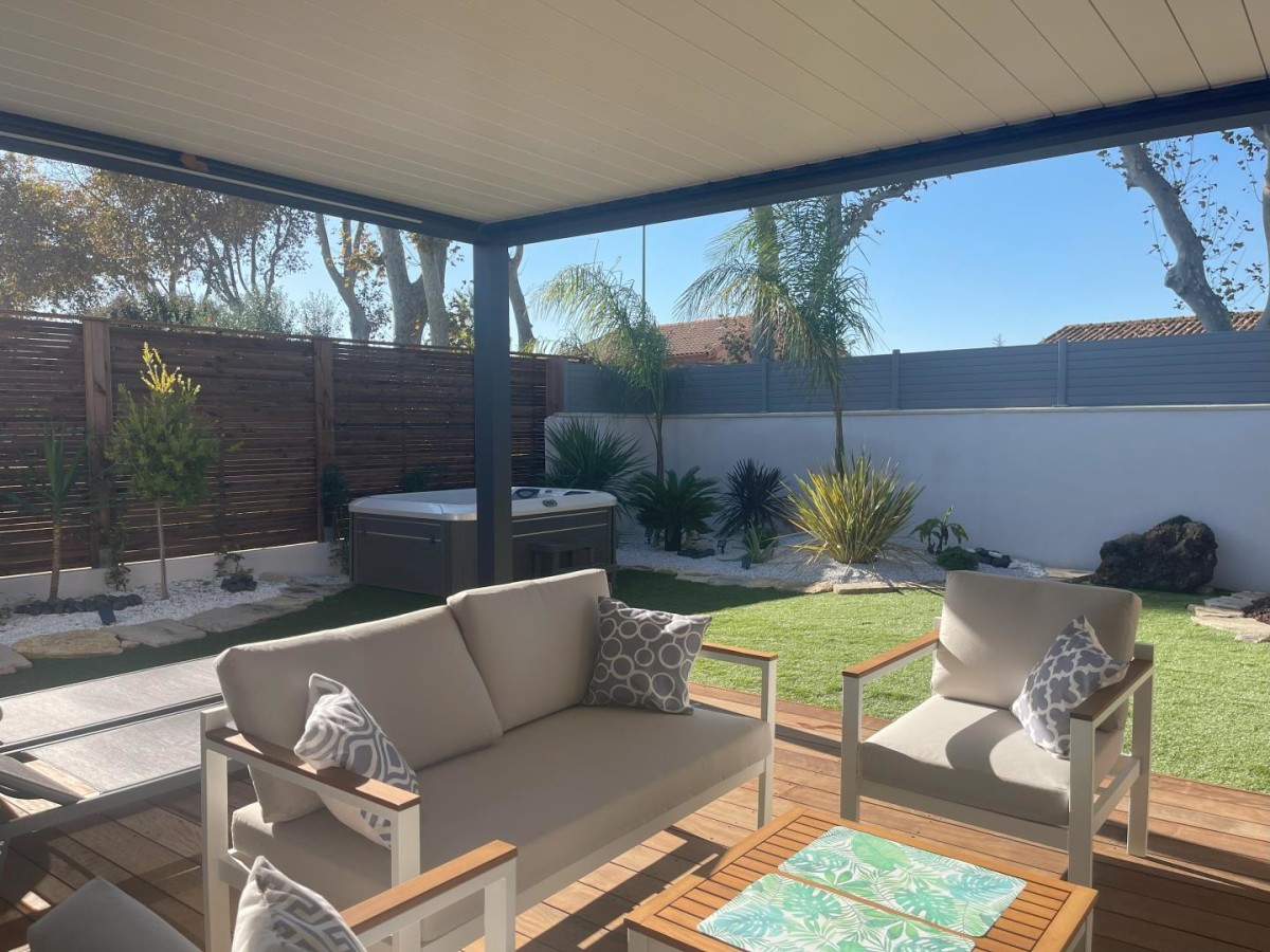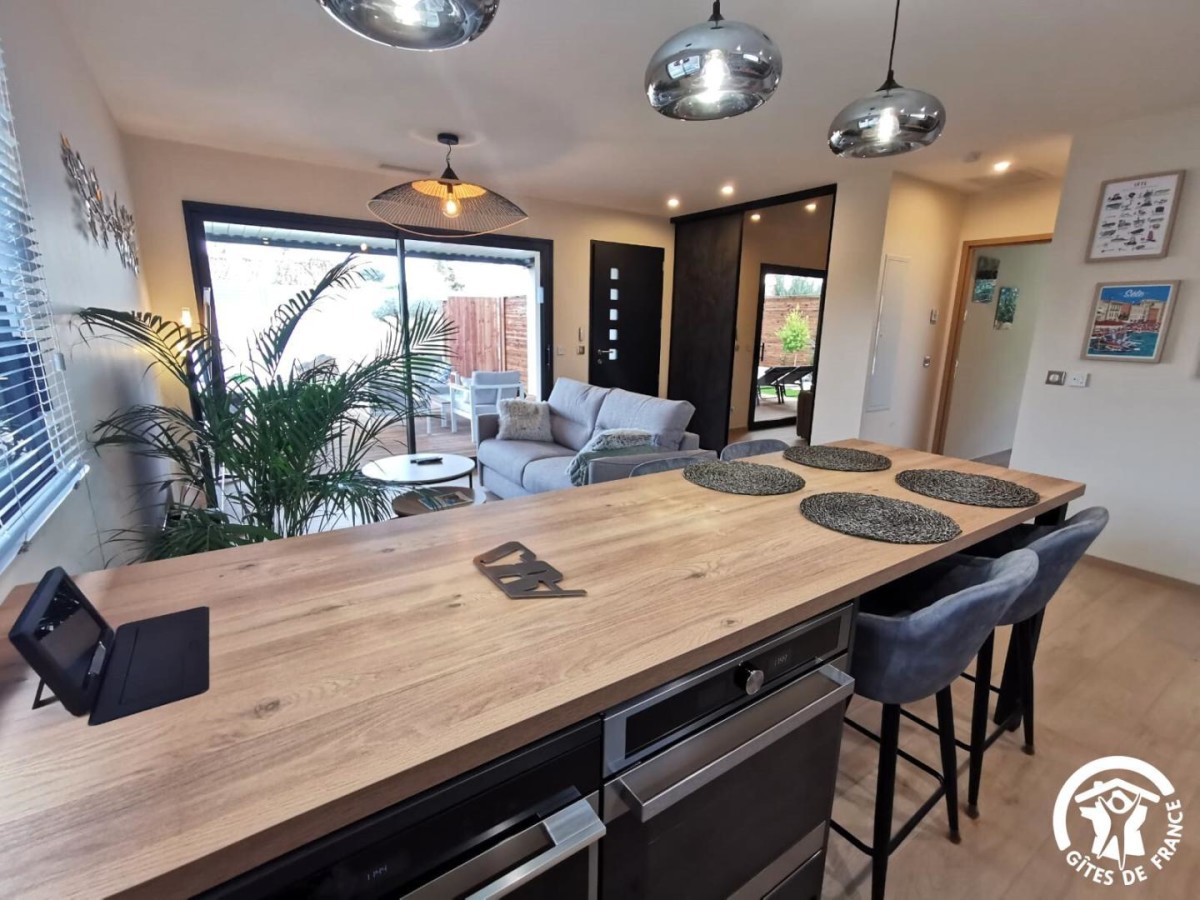 Au bord de l’Etang de Thau, vous pourrez profiter d’une belle maison moderne et bien décorée à seulement dix minutes à pied du centre-ville de Mèze avec ses commerces et marchés, et des plages. De par sa localisation, la charmante ville de Mèze vous donne accès aux nombreux atouts de notre littoral, entre baignade, détente, activités nautiques (voile, kayak). Vous pourrez également rejoindre les plages des stations balnéaires alentours comme Balaruc, Sète, Marseillan, et choisir de vous baigner dans l’Etang ou la Méditerranée. En termes de gastronomie, ne manquez pas de déguster la fameuse Tielle, les coquillages de l’Etang de Thau et bien sûr les vins locaux ! A quelques minutes en voiture vous pourrez rejoindre Pézenas, ville de Molière, et vous balader dans ses ruelles médiévales, y découvrir de nombreuses boutiques d’artisanat, et son marché traditionnel le samedi matin. Agde et ses soirées animées sont à seulement 30km. Le gîte comporte : – Une belle pièce de vie avec un salon avec un canapé et une grande télévision, ainsi qu’une cuisine très bien équipée avec four, micro-ondes, réfrigérateur avec compartiment congélateur, lave-vaisselle, lave-linge, cafetière, bouilloire, et tout le nécessaire de cuisine ; – Une chambre avec un lit queen-size (160×200 cm), un grand dressing ainsi qu’un patio extérieur avec salon de jardin ; – Une salle d’eau avec douche à l’italienne, vasque avec miroir et WC ; – Une terrasse avec un beau salon de jardin avec télévision et bains de soleil, ainsi qu’un agréable jardin avec spa et barbecue plancha. Vous pourrez vous garer de façon privative dans la propriété, et une prise de recharge payante pour voiture électrique 36A 220V est mise à disposition (à voir avec les propriétaires. Ces derniers proposent également en location pour partir à la découverte des alentours un scooter 125 (permis moto 125 exigé) et un quad de loisirs (permis B obligatoire) sur demande (tarifs à voir avec les propriétaires).
