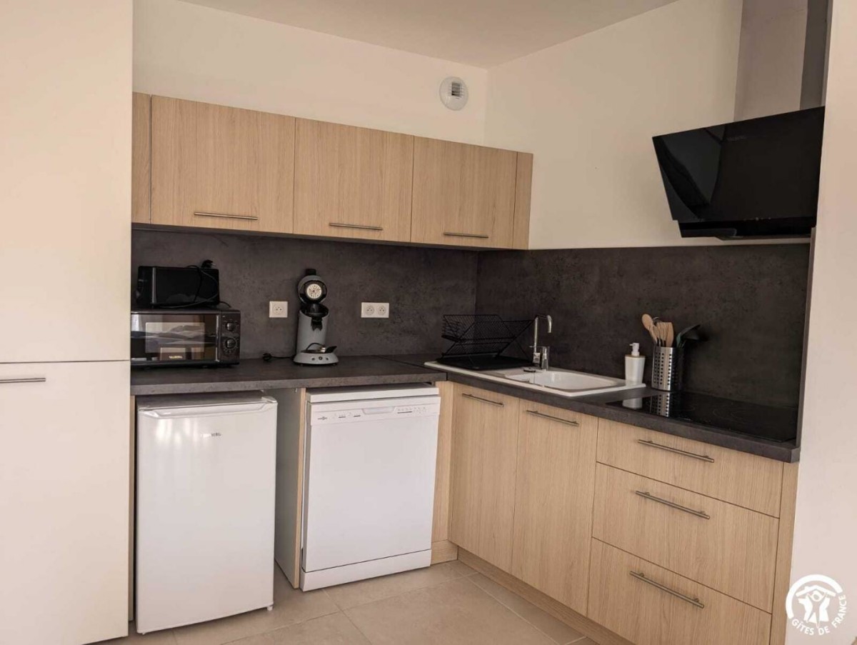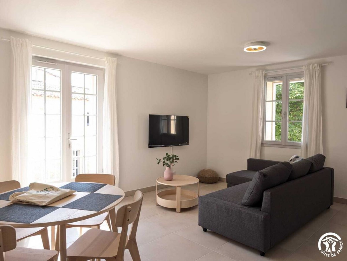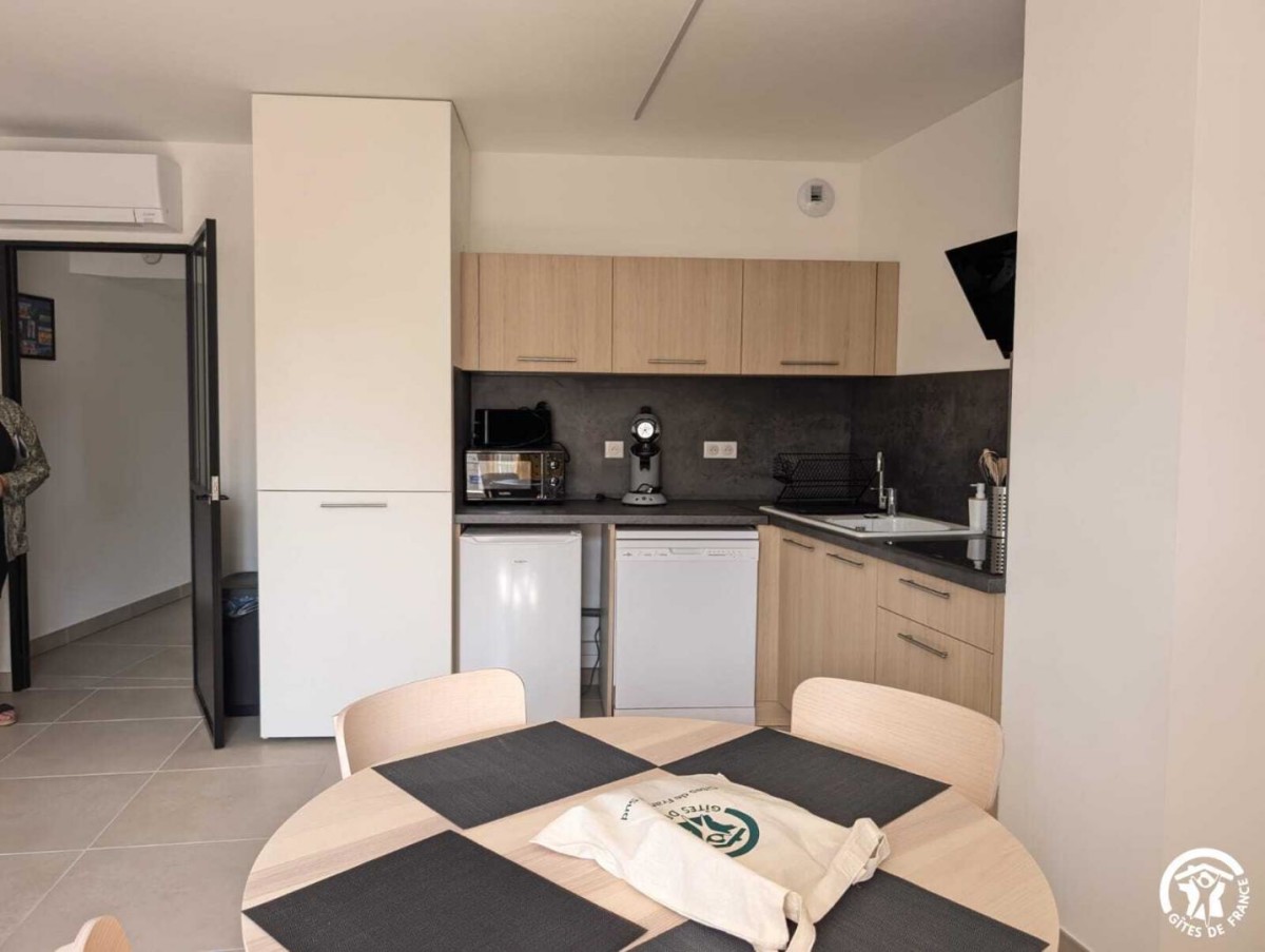 A proximité, ne manquez pas de découvrir Sommières et son fameux marché le samedi matin. A mi-distance des Cévennes et de la Méditerranée. Vous pourrez également rejoindre le Salagou, le cirque de Moureze ou de Navacelle. Montpellier se trouve à environ 35km et les stations balnéaires comme Palavas à 45km. Le gîte climatisé se situe à l’étage d’un nouveau bâtiment, avec une entrée commune avec deux autres gîtes. Il se compose ainsi: – Un séjour avec canapé convertible, télévision, wifi et d’une cuisine ouverte toute équipée (Cafetière Senseo, lave-vaisselle, lave-linge, micro-onde) – Une chambre avec un lit en 140*190 donnant sur une salle d’eau avec douche et vasque. – WC séparés Le gîte se situe à proximité direct du parc ombragé de Claret (voir photos) Parking public à proximité directe avec borne de recharge électrique Revéo.
