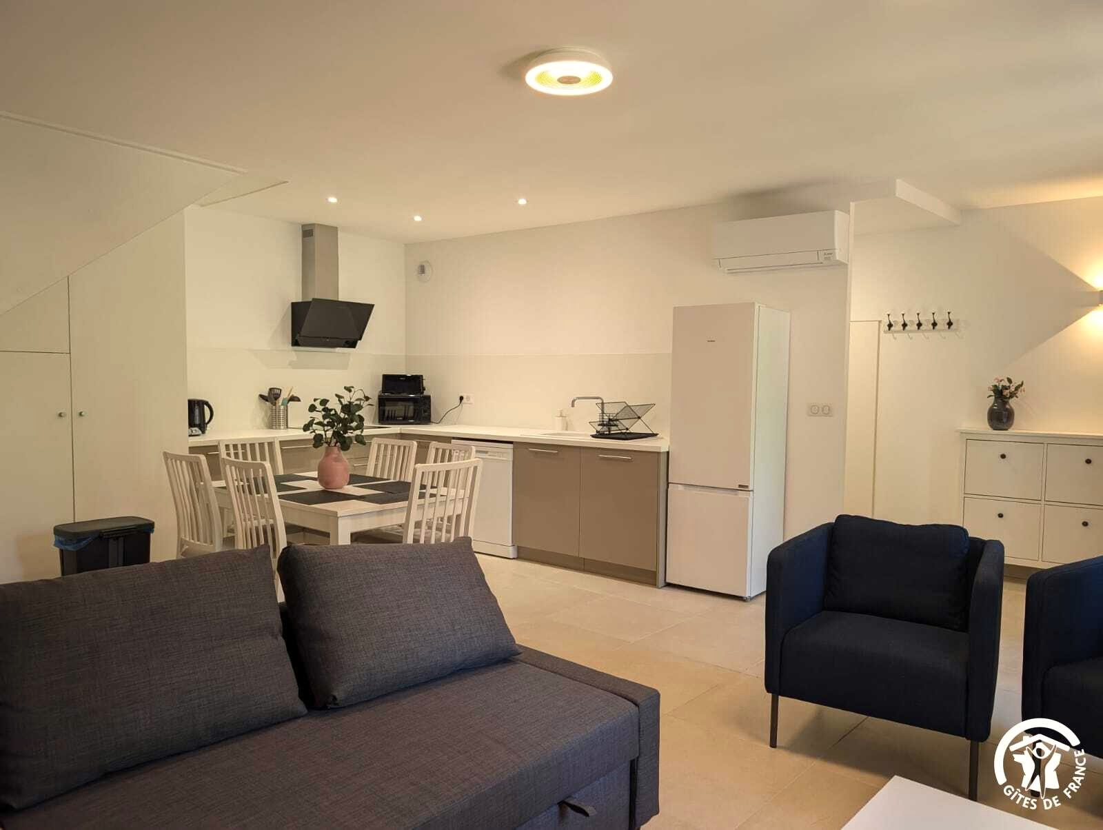 L’Orangerie, élégante maison de maître du XIXᵉ siècle, a récemment été réhabilitée pour accueillir trois gîtes. Ses balustres d’époque offrent une vue à la fois sur l’esplanade et sur un parc arboré aux essences variées. Entièrement climatisée, cette bâtisse située au centre du village fait le lien entre la vie locale et le cœur historique de Claret.