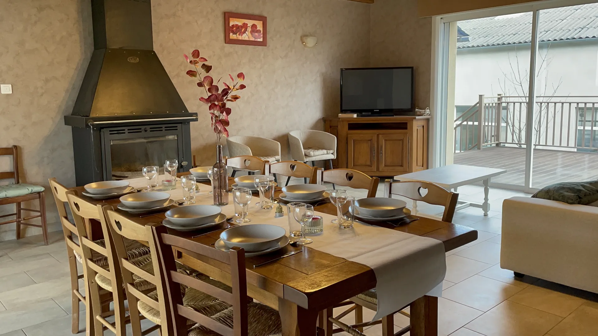 2 terrasses (équipées d’un barbecue, de tables, de chaises et de transats)