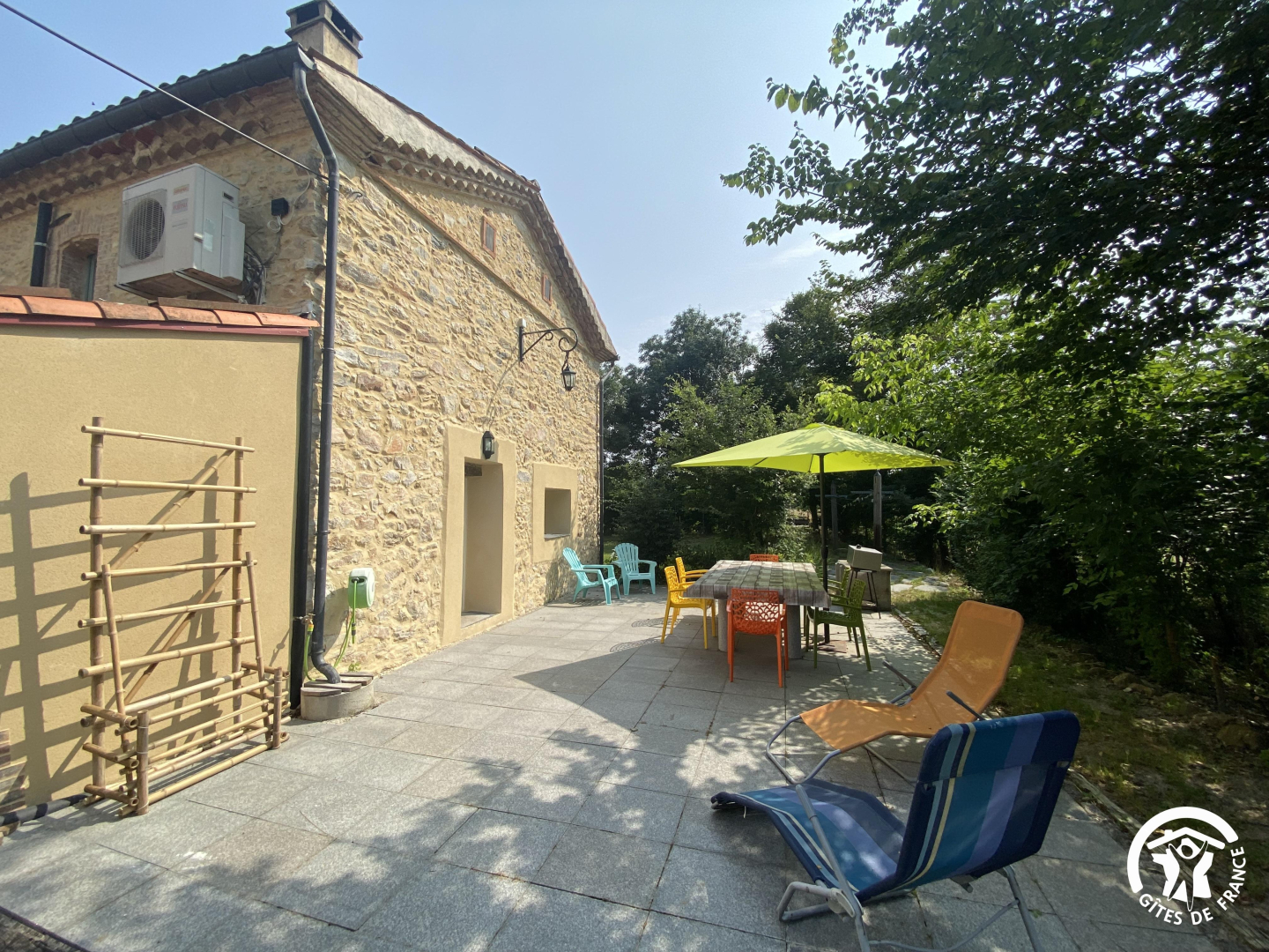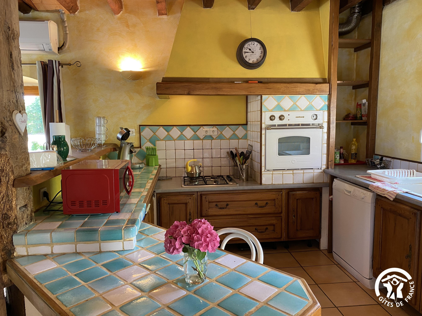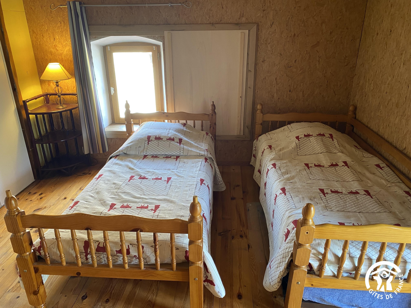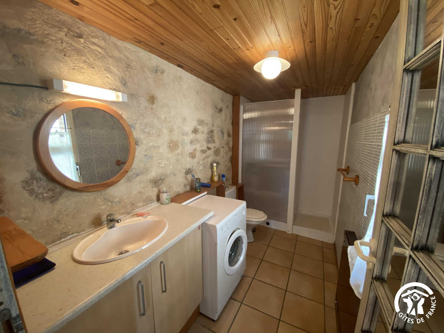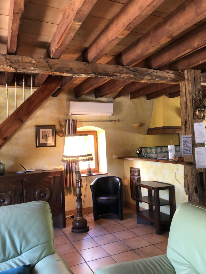 La Baraque à Paille, gîte indépendant. Rez-de-chaussée : séjour avec coin-cuisine ouverte toute équipée (équipement électroménager complet) , salle d’eau. A l’étage : une chambre pour deux personnes (lit double 140x200cm), une salle de bain (baignoire) avec wc, et sur le palier un grand espace pour les enfants avec deux lits en 90 et un canapé BZ. Climatisation réversible (pompe à chaleur) à l’étage et au rez-de-chaussée, poêle (bois fourni).
