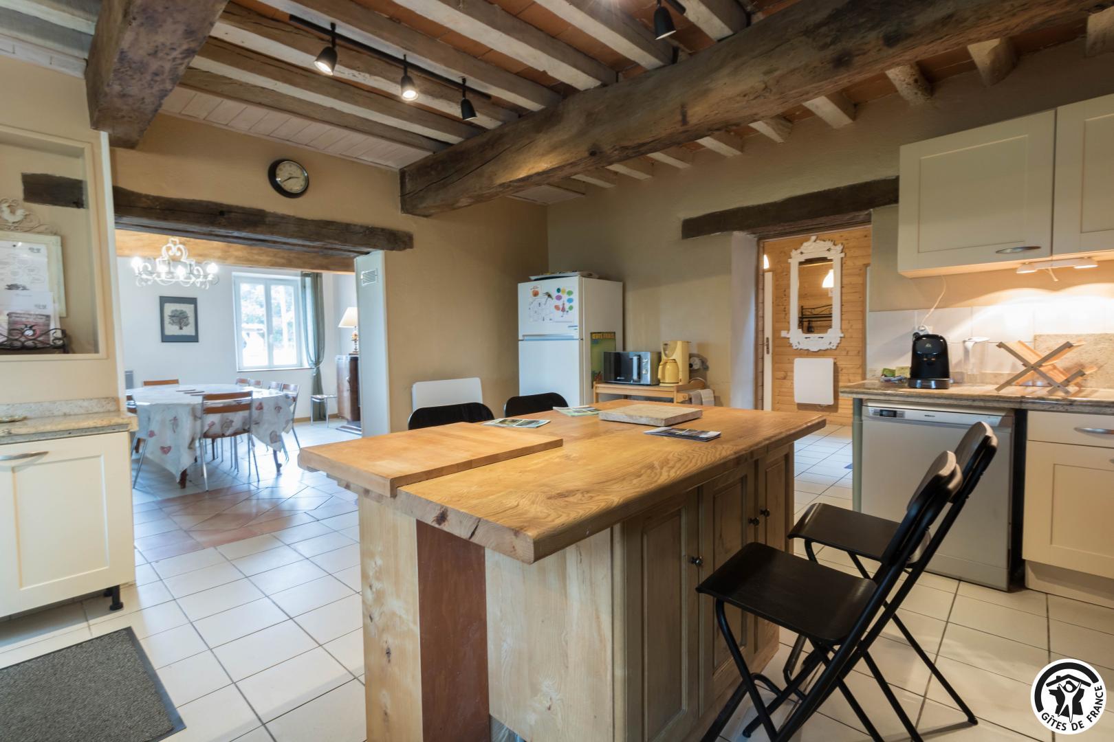 Rez-de-chaussée : entrée par 2 marches dans la cuisine intégrée, salle à manger ouverte sur la cuisine, dégagement, buanderie (lave linge, sèche-linge), WC, salle d’eau, salon (canapé convertible pour 2 personnes en 140*190cm, grand canapé ,TV). Au premier étage : hall avec coin-détente et bibliothèque enfants et canapé convertible pour 2 personnes en 140*190cm, 4 chambres (2 lits simples en 90*190cm et 1 lit double en 140*190cm)(2 lits simples en 90*200cm, jumelable en 1 lit double en 180*200cm)(1 lit double en 140*190cm)(1 lit pour 2 personnes en 160*200cm), salle d’eau/WC. Chauffage électrique. Animaux admis avec caution supplémentaire.
