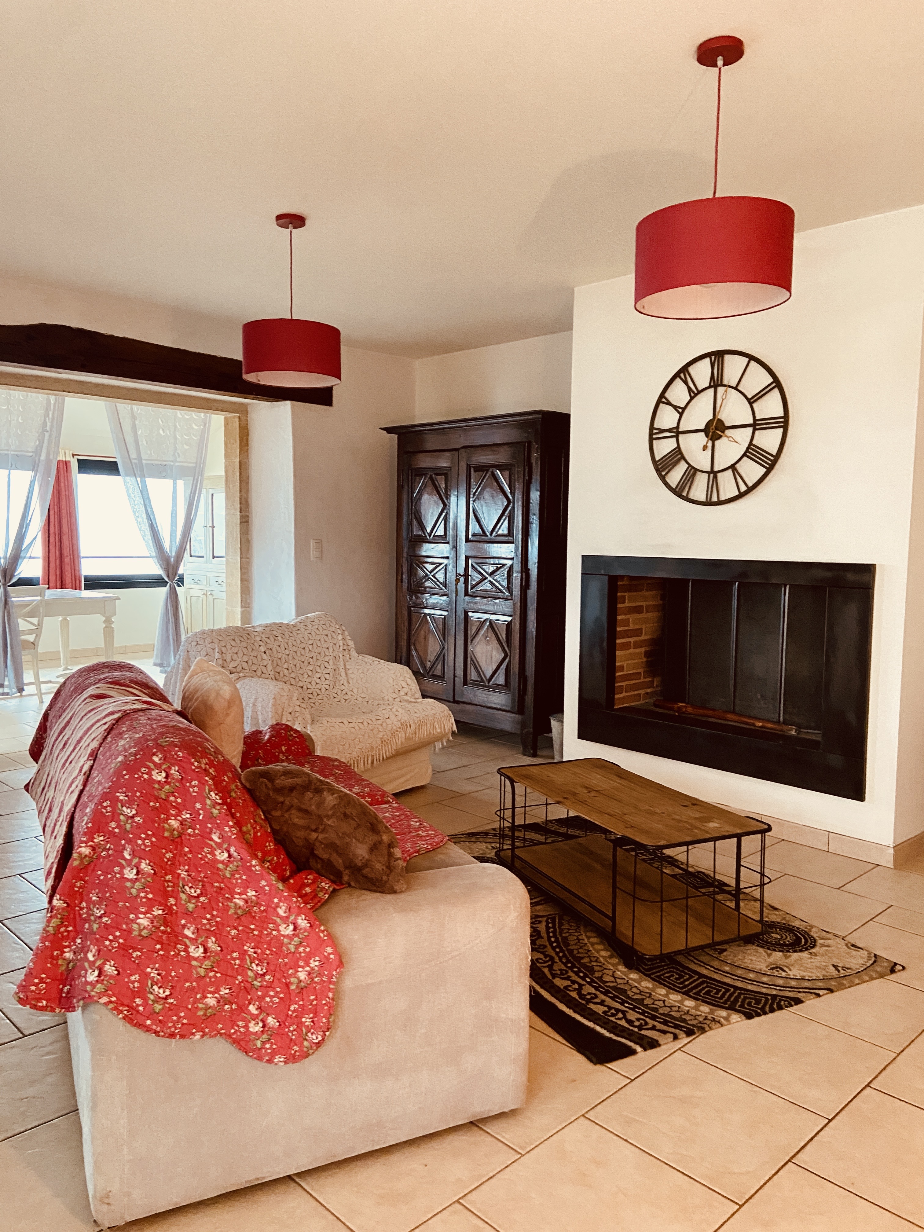 Salon avec cheminée ouverte
