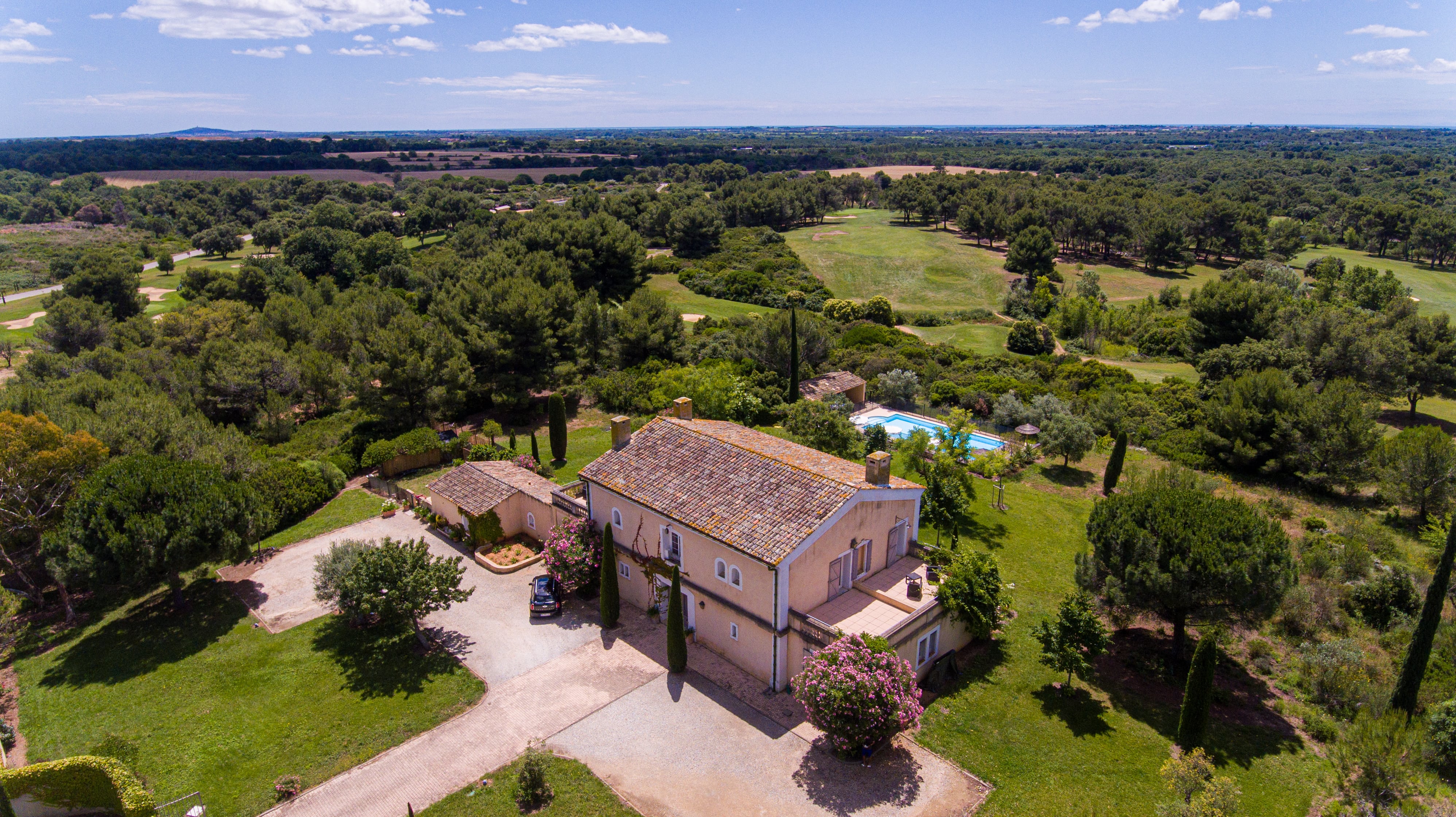 La Bastide du Bel Air est située au cœur du Golf Saint-Thomas à Béziers, composée de 7 chambres dont 6 salles de bain et salles d’eau, d’une piscine, TV par satellite, wifi, parking privatif, et peut accueillir 14 personnes.