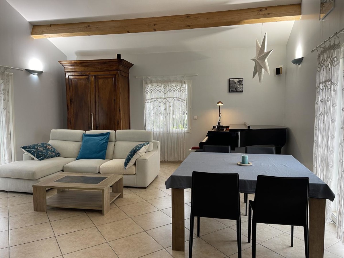 Située à La Grande Motte, station balnéaire emblématique de l’Hérault, La Belle Bleue vous accueille dans un quartier calme, à proximité immédiate du golf et non loin de la mer ! L’architecture moderniste de la ville, ses espaces verts et sa vie locale dynamique en font une destination prisée toute l’année. À moins de 10 km, le Seaquarium du Grau-du-Roi ravira petits et grands, tandis que les remparts d’Aigues-Mortes et les paysages sauvages de la Camargue, jusqu’aux Saintes Maries de la Mer, offrent de belles échappées. Montpellier, à seulement 25 km, complète l’expérience avec ses musées, son centre historique et ses nombreux événements culturels. La Belle Bleue est une maison indépendante pensée pour des séjours en famille, dans une ambiance contemporaine et méditerranéenne. Au rez-de-chaussée, vous disposez d’une cuisine séparée entièrement équipée (four, micro-ondes, lave-vaisselle, réfrigérateur, congélateur), d’un salon/salle à manger avec télévision, canapé et table à manger, d’une salle d’eau avec douche, vasque et WC indépendant, ainsi que d’une première chambre. À l’étage, vous trouverez une salle de bain avec baignoire, vasque et WC indépendant, ainsi que deux chambres supplémentaires (lits doubles standards 160x200cm). À l’extérieur, vous profitez d’un jardin privé, une grande table et un grand parasol , bains de soleil, barbecue, plancha et une belle vue sur le golf. La piscine privative est accessible du 1er juin au 31 octobre, idéale pour se détendre dans l’eau ! Le stationnement est simple et gratuit immédiatement dans l’impasse. Le gîte est climatisé pour votre confort en toute saison. Les points forts : quartier calme, vue sur le golf, proximité de la mer, confort moderne, piscine, nombreuses activités à La Grande Motte et alentours !