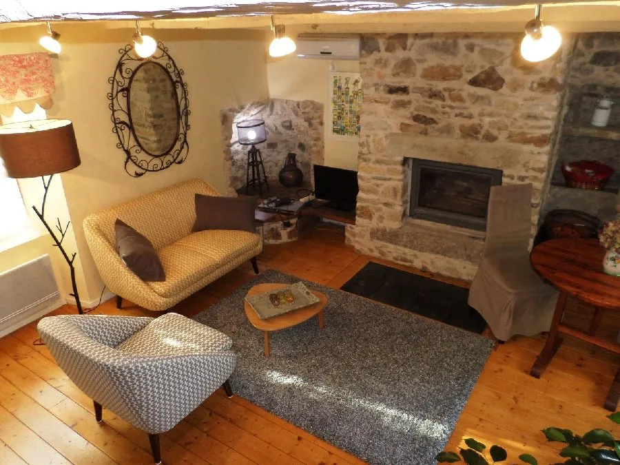 Situé dans le hameau de Peyremorte, surplombant Villefranche-de-Rouergue, cette maison indépendante fait partie d’un ensemble de bâtiments formant la cour d’une ancienne ferme. Construit au début du XIXème siècle, ce bâtiment a été l’école pour les enfants du hameau qui comptait à l’époque plus de 50 habitants. Nous l’avons modifié et aménagé pour vous accueillir. Ce gîte donne sur un pré dans lequel ânes, poules vivent paisiblement. Une grande terrasse permet de profiter du panorama (barbecue, salon de jardin). Sur le niveau de plain-pied, un séjour (climatisé) est équipé d’une cheminée, une cuisine (lave-vaisselle, four, lave-linge …) ouverte sur celui-ci. A l’étage, une grande chambre avec lit de 160 (climatisée) et une salle de bains vous permettront de profiter d’un repos bien mérité. Les photos suivantes vous donneront une idée de l’ambiance de ce gîte. Animaux acceptés sous certaines conditions.
