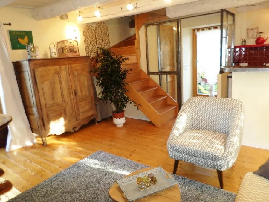 Très belle restauration pour cette maison indépendante située au coeur d’une ancienne ferme du XVII°/XVIII° siècle, dans la vallée de l’Aveyron, à proximité de Villefranche, au milieu d’animaux (poules, ânes…) dans le Hameau de Peyremorte.