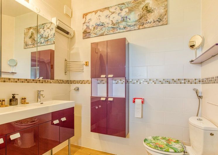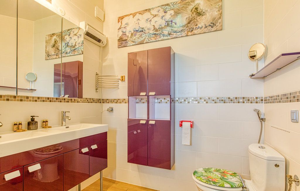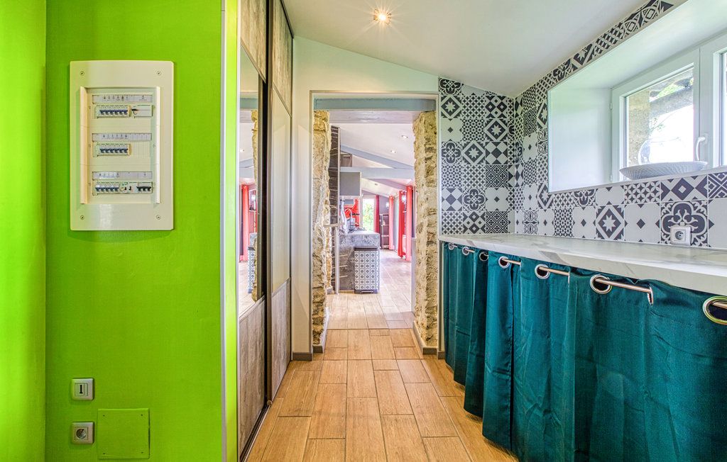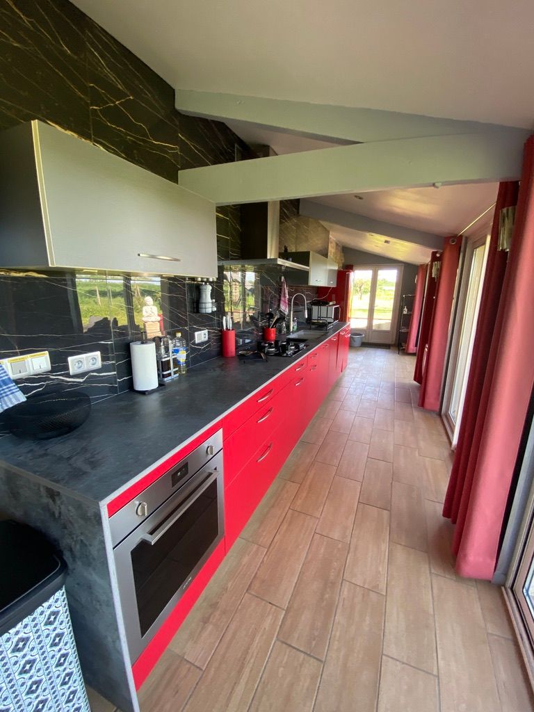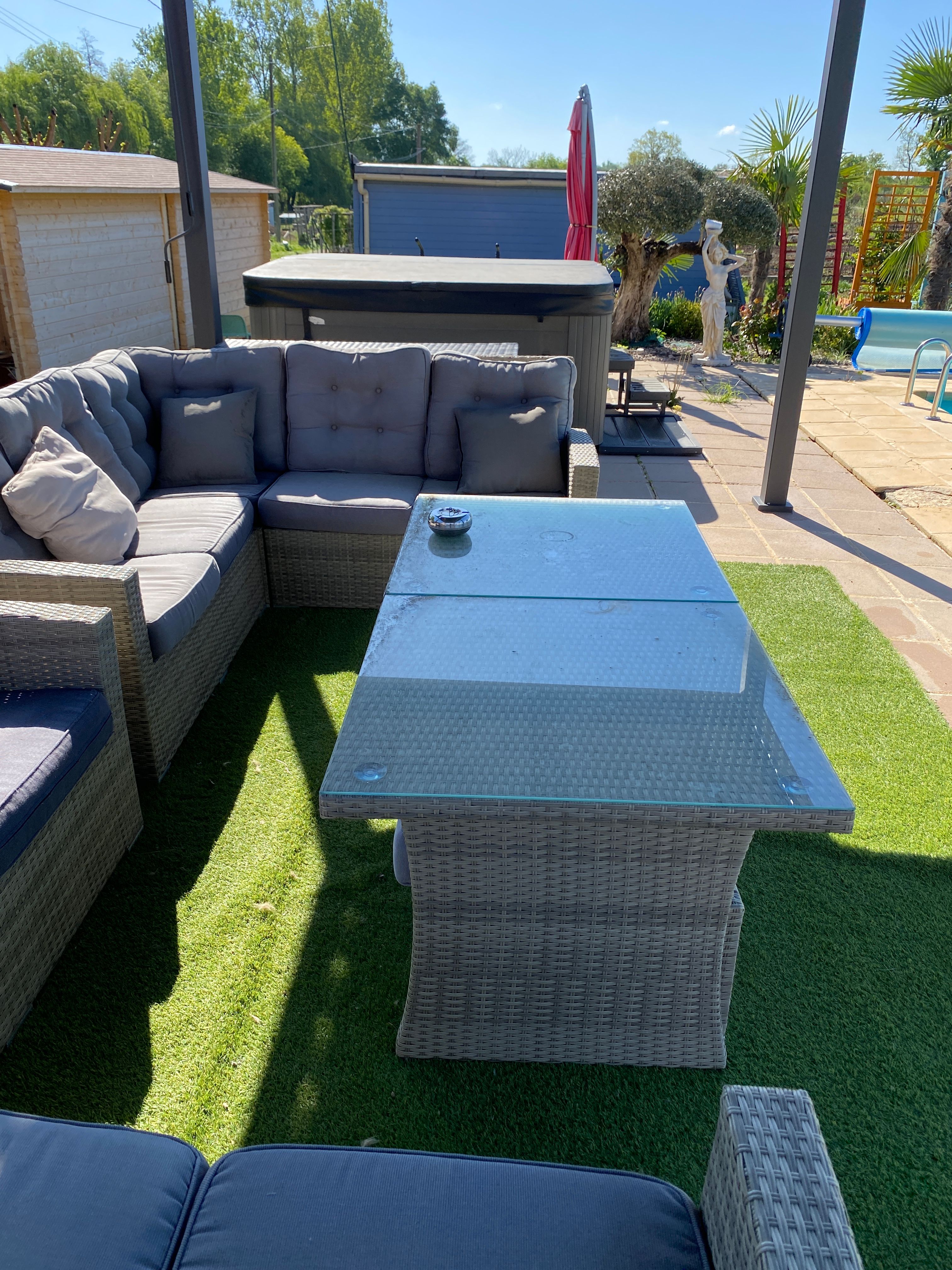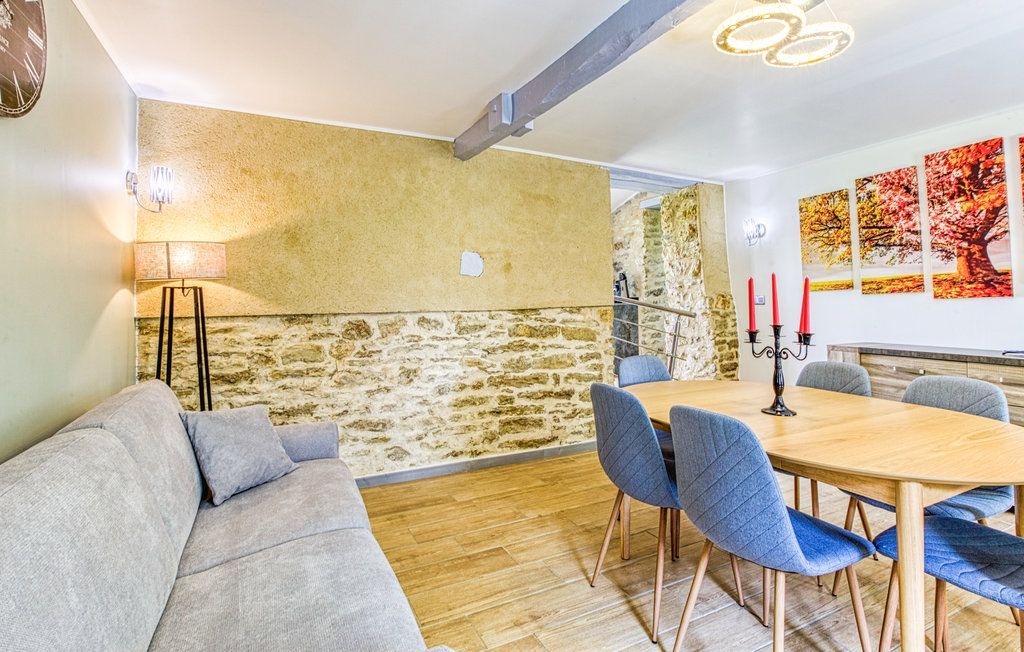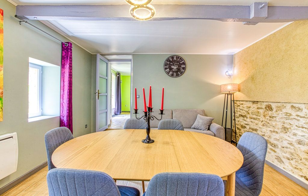 Au rez-de-chaussée, une première terrasse, mobilier de jardin, barbecue au gaz. Une cuisine tout en longueur (éléments intégrés : réfrigérateur, congélateur, plaques, four, micro-ondes lave-vaisselle). Une première chambre avec 1 lit 140 x 200 (canapé convertible) poêle à granules, TV. Une salle à manger (table et chaises et meuble avec jeux de société. Une grande chambre avec 1 lit 160 x 200 plus un canapé lit convertible 140 X 200, TV donnant sur un jardin avec massif et ruissellement d’eau. Une salle de d’eau avec douche à l’italienne. Espace laverie avec lave-linge, sèche-linge. Linge de lit de toilette et de maison fournis, compris dans le prix. Wifi dans le logement gratuit. Peignoirs de bain fournis. Du 15 mai au 31 octobre accès à la piscine partagée avec son spa. Logement entièrement climatisé.