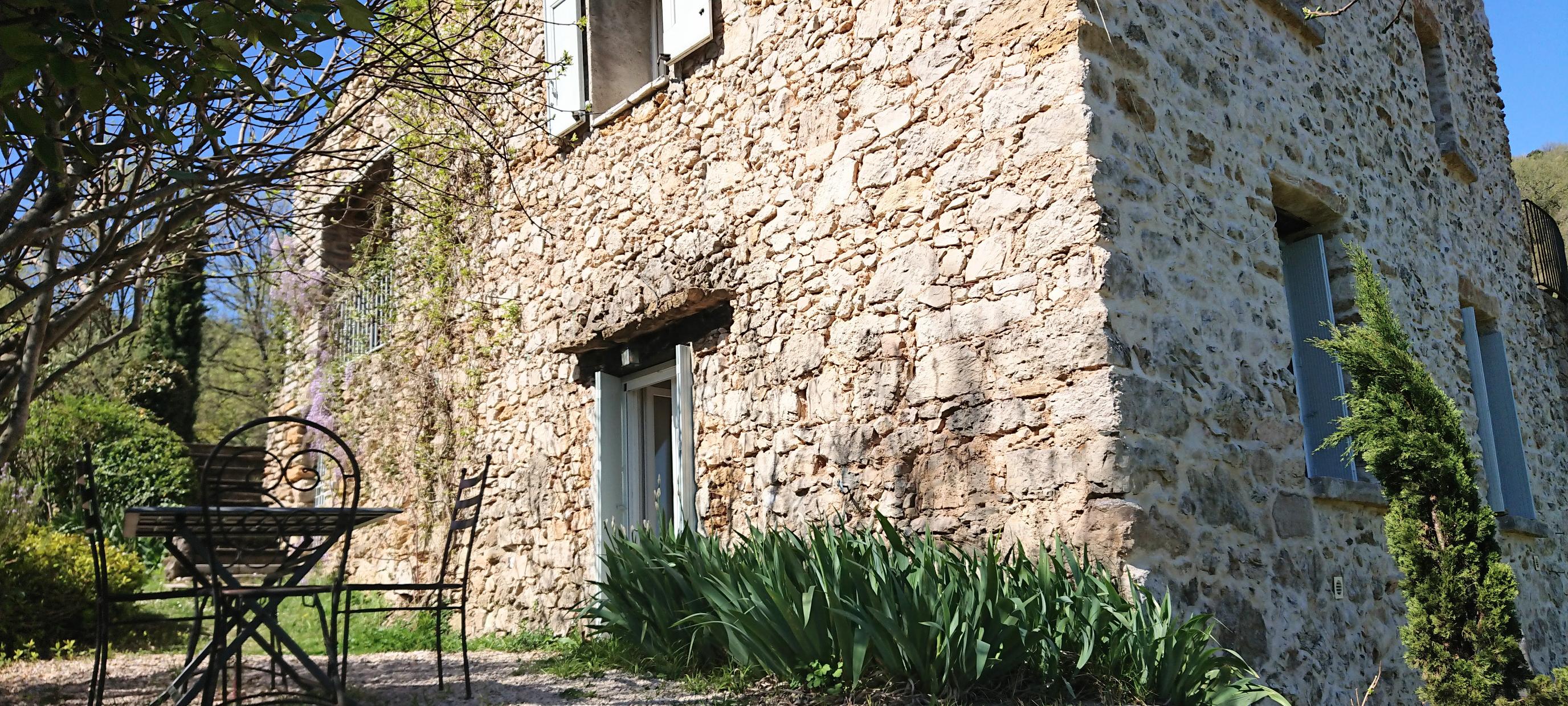 Habitat traditionnel cévenol. Bergerie voutée aménagée (en 2022) en gîte indépendant et confortable, dans une authentique bastide avec vue dominante sur les Cévennes et la vallée de La Vis, terrain arboré de 2 HA et piscine à débordement. Terrasse, jardin
