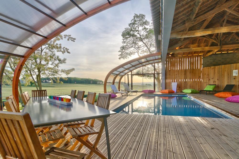 Grand meublé de tourisme avec piscine couverte en plein campagne.