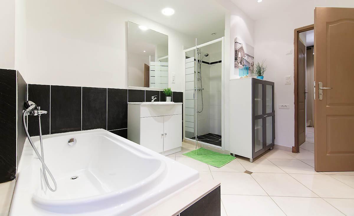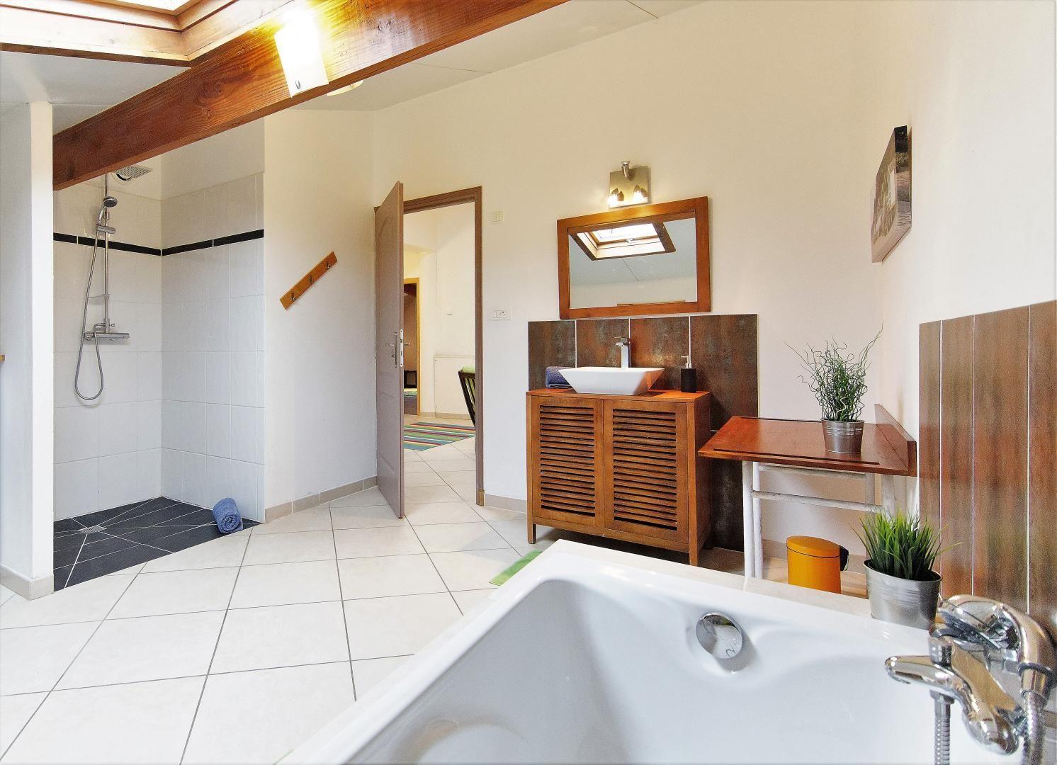 Grande capacité : un appartement attenant de 75M² est disponible pour 8 personnes supplémentaires (Salon + kitchenette, 2 chambre, 1 SDB, wc, 7 couchages 90 ou 180x200cm) – inoccupé si vous ne le réservez pas.