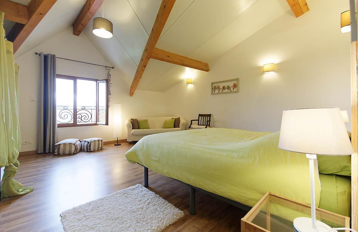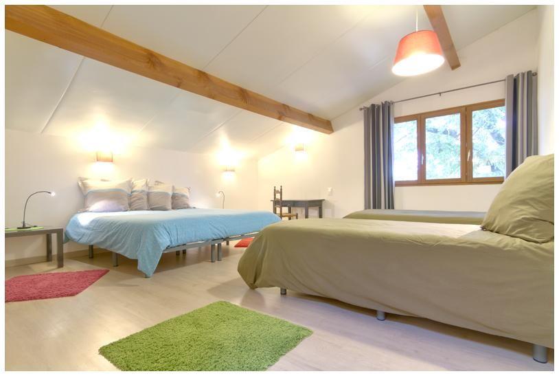 A l’ETAGE : 3 grandes chambres mansardées de 20 à 30m2 (dans lesquelles sont répartis à la demande 8 à 13 couchages), salle de bains + douche italienne + Lave-linges 15kg, wc. Draps et Linge disponibles en option. Palier aménagé en salon ou bureau. Une mezzanine.