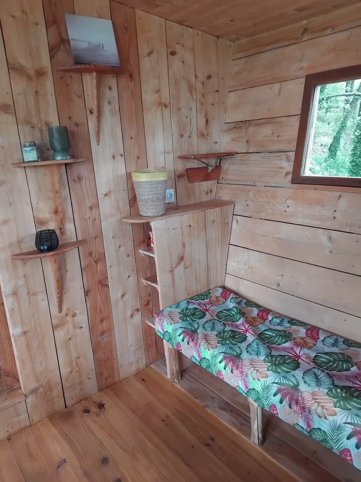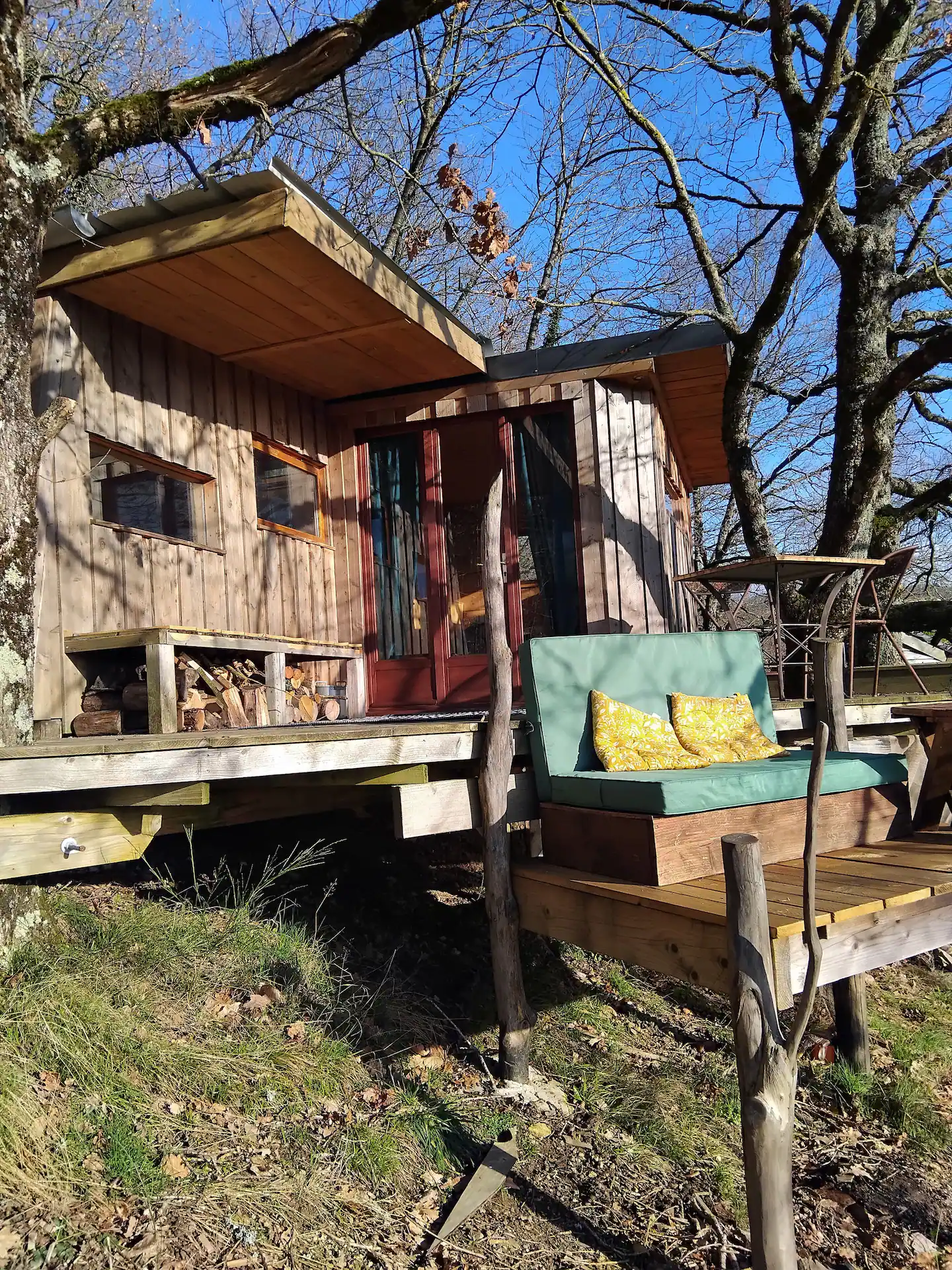 Nichée dans un coin intimiste, à l’écart de notre habitation, la cabane offre calme, déconnexion et autonomie, tout en garantissant un excellent niveau de confort. Idéale pour une escapade en solo ou en couple, elle promet une véritable pause hors du temps.