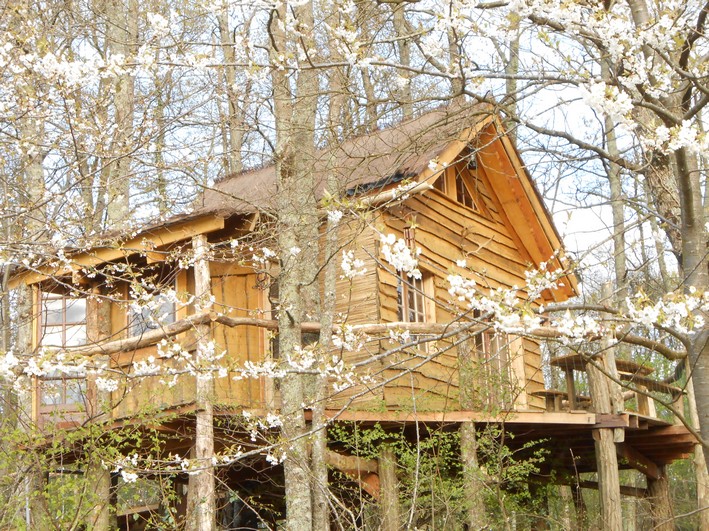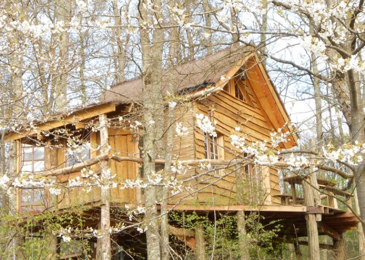 La cabane s’étend sur trois niveaux : en sous-sol, un salon panoramique et un espace détente ; au rez-de-chaussée, coin salon, kitchenette équipée, chambre parentale, salle de bain et toilettes sèches ; à l’étage, une chambre mansardée avec deux lits simples. Située sur une ferme pédagogique bio, elle permet de profiter d’activités nature sur place : piscines en été, poney, filet suspendu, tyroliennes, et dégustation de produits bio de la ferme, glaces et fromages. .