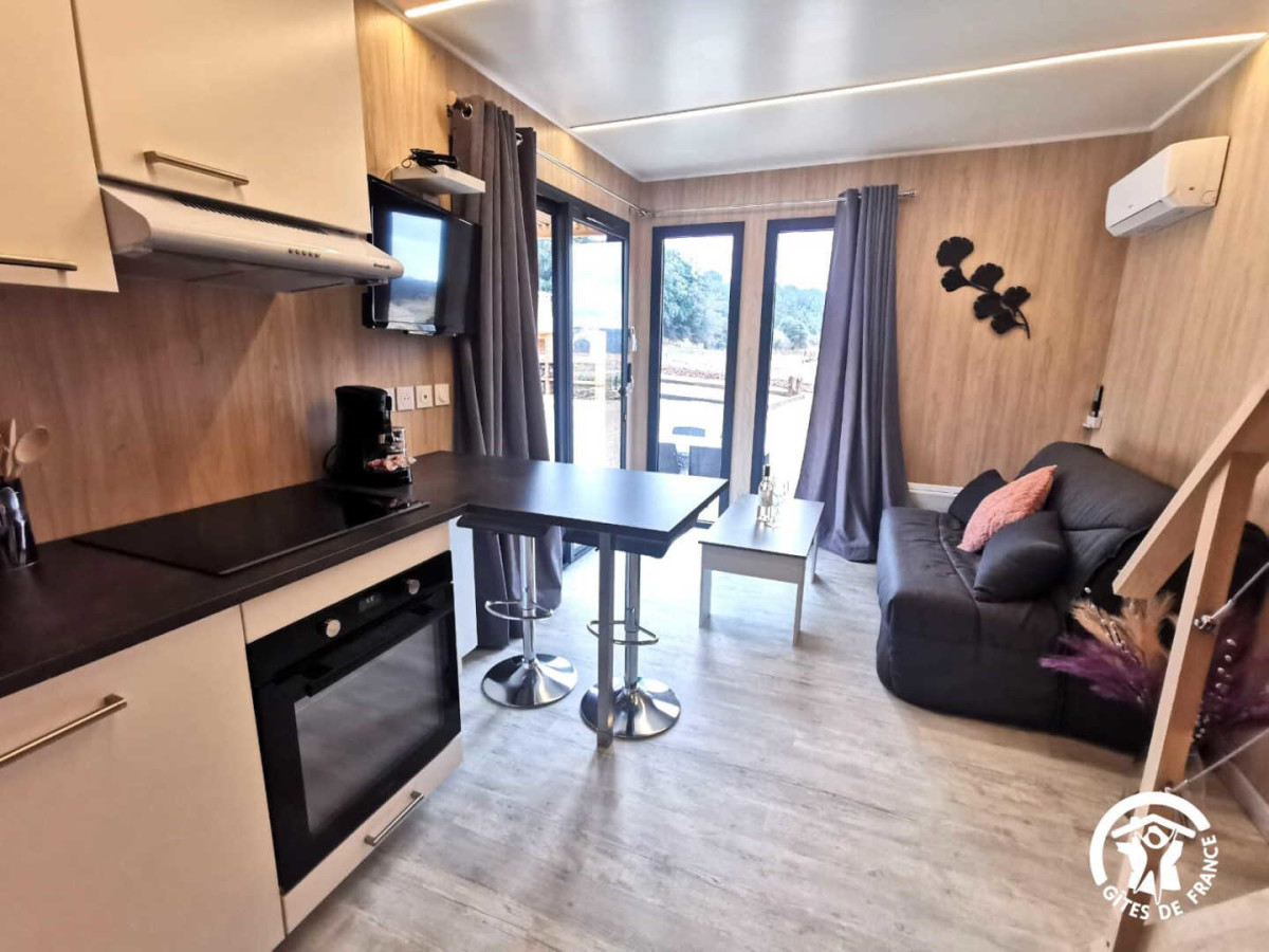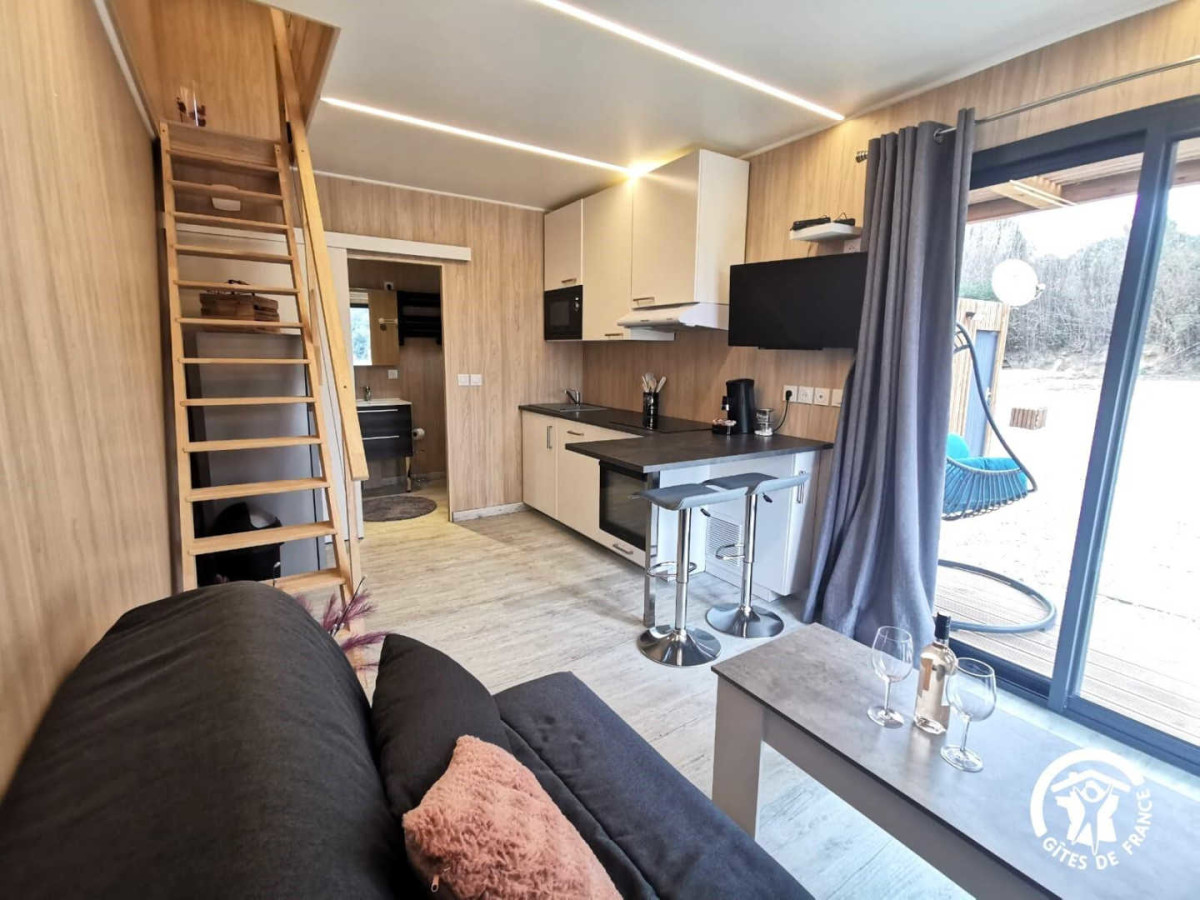 Le salon dispose d’un canapé convertible (qui peut servir de lit d’appoint en cas de besoin), d’une télévision et d’une table basse, idéal pour déguster un bon verre de vin du vignoble avec une belle vue par les baies vitrées sur les extérieurs du domaine. La cuisine est tout équipée: lave-vaisselle, four, micro-ondes, réfrigérateur avec compartiment congélateur, machine à café, bouilloire et même un appareil à raclette pour des moments de convivialité. Au rez-de-chaussée, salle d’eau avec douche et WC. A l’étage, un coin nuit (d’une hauteur sous plafond d’1m80) pour deux personnes avec un lit 140×190 cm et accès direct sur un beau balcon avec table et chaises, le tout avec une vue imprenable sur le vignoble. A l’extérieur, un salon de jardin avec table et chaise vous permettra de vous détendre. Un cabanon en bois avec une machine à laver est également à votre disposition. Vous pourrez aussi retrouver un barbecue et un four à pizza traditionnel ainsi qu’un terrain de pétanque et une table de ping-pong pour des parties endiablées sous le soleil ! Piscine partagée avec l’autre gîte, disponible de Juin à Septembre (2,5 m x 4 m, profondeur 1,4m), sécurité et douche extérieure. Une borne de recharge pour voitures électriques est disponible librement et gratuitement derrière l’hébergement, ainsi qu’une place de parking privative. Attractions touristiques : Village typique du Languedoc enroulé autour de sa circulade (l’architecture du centre du village est construite en escargot) et bordé de garrigues et de vignes, ne manquez pas d’explorer le charmant village vigneron de Saint-Pargoire, son église et son centre historique à l’intérieur des anciennes murailles. A courte distance en voiture, profitez du Lac du Salagou qui offre des activités nautiques et des randonnées au milieu d’un paysage unique formé par le barrage et les collines rouges. Ne manquez pas non plus le célèbre village de Saint-Guilhem-le-Désert, classé parmi les plus beaux villages de France