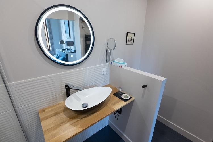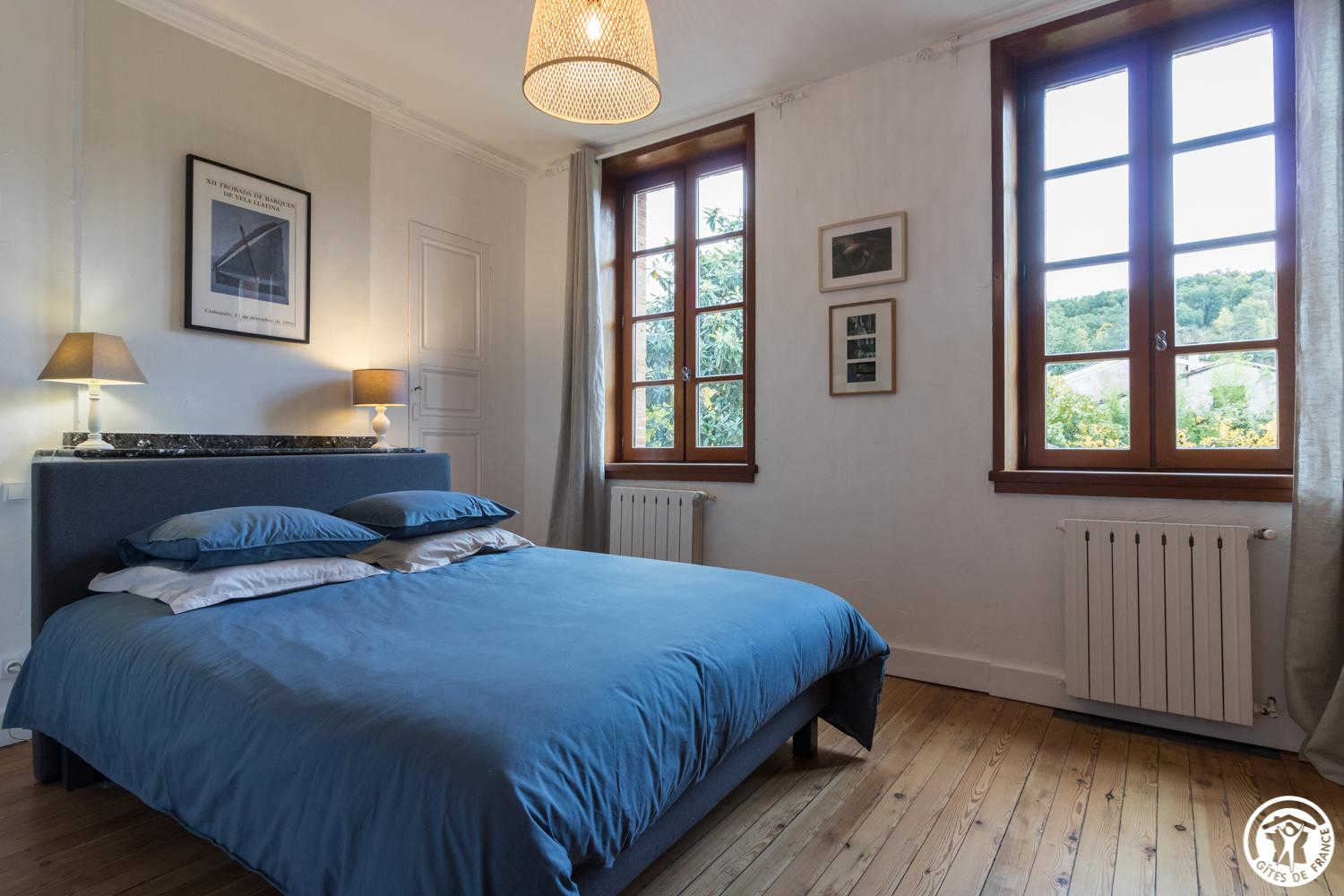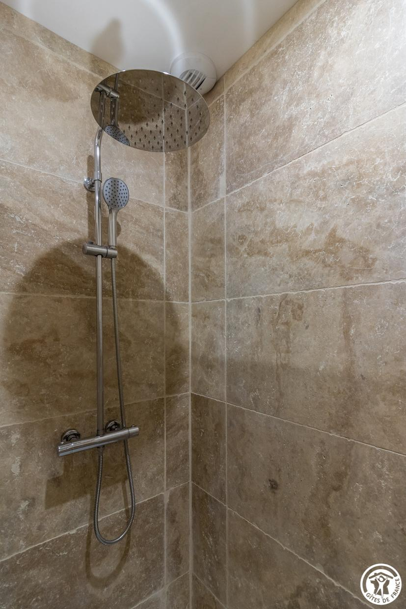 – à l’étage, les deux chambres d’hôtes sont distribuées par un palier commun : Vent d’Ouest et Vent d’Autan, chacune équipée d’1 lit 2 personnes en 160cm + 1 lit 1 personne en 90cm et dotée d’une salle d’eau/WC privative et attenante (avec grande douche 90×120).