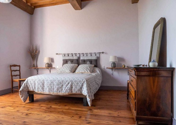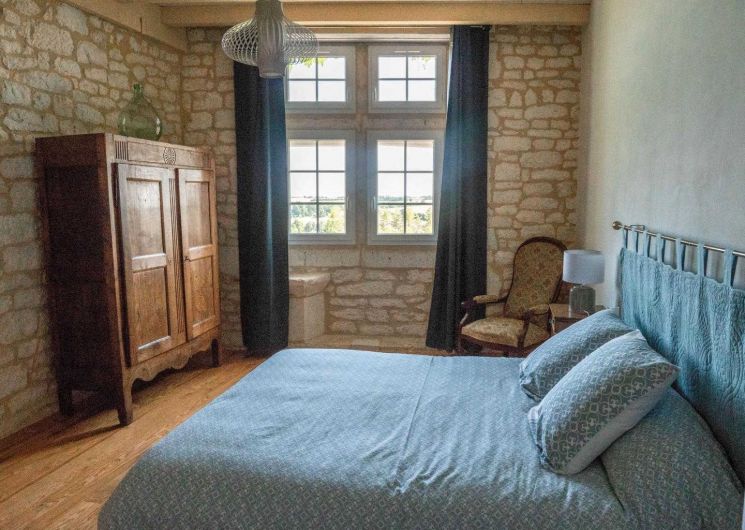 – Au deuxième étage, la quatrième chambre offre beaucoup de cachet avec sa belle fenêtre à meneaux, lit en 160x200cm.