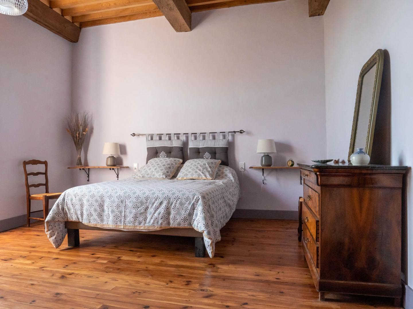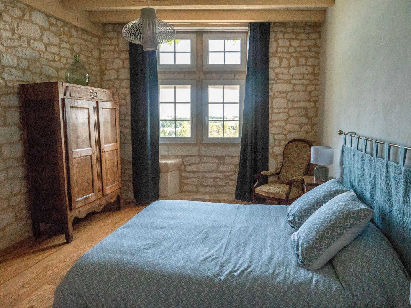 – Au deuxième étage, la quatrième chambre offre beaucoup de cachet avec sa belle fenêtre à meneaux, lit en 160x200cm.