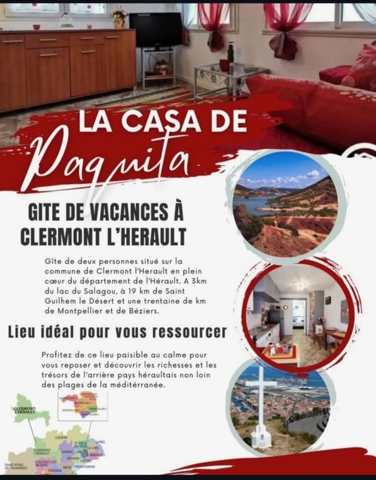 Bienvenue au gîte » La Casa de Paquita « , où vous serez accueillis par Jocelyne et François. Au calme, dans une impasse résidentielle et privée, ce petit cocon pour 2 personnes dispose d’un coin cuisine ouvert sur le salon. Vous trouverez une chambre avec un lit 140×190 donnant accès à une belle salle d’eau avec douche à l’italienne et wc. Détendez-vous sur la terrasse avec salon de jardin et plancha à disposition. Ce gîte possède le label Accueil Vélo. Bienvenue accueil motos dans un jardin clos et sécurisé. Cabanon fermé à disposition pour vélos et branchement éléctrique en toute sécurité. ATTRAITS TOURISTIQUES : Sur place : Découvrir la ville à pied avec sa cathédrale gothique Saint Paul, la Chapelle des Dominicains, son château des Guilhem etc.Le marché typique a lieu tous les mercredis matin au centre-ville et la brocante de Loulou tous les dimanches matin sur le parking de la gare. A proximité : Causses, vallées, gorges de l’Hérault, Lac du Salagou, Cirque de Mourèze, Villeneuvette (ancienne manufacture royale), Saint-Guilhem-le-Désert (Abbatiale), les grottes de Clamouse, Pézenas, Mer à 35 minutes (Mèze, Agde) et montagne à 1h30 avec le Mont Aigoual.