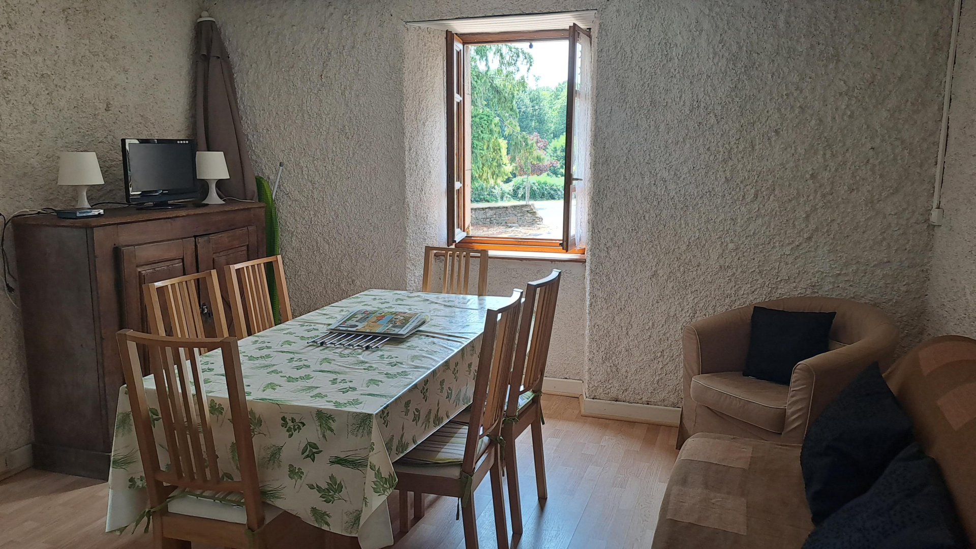 Ce gîte se situe à l’étage, on y accède par un escalier donnant sur la place. Balcon en entrée où l’on trouve un salon de jardin. Séjour, cuisine, deux chambres (deux lits doubles 140×190), salle d’eau avec wc. Chauffage gaz et électrique. Barbecue. Prix toutes charges comprises.