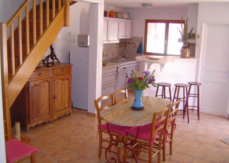 Le séjour s’ouvre sur une cour-terrasse plein sud, couverte par une pergola avec salon de jardin et plancha disponibles pour profiter pleinement des soirées d’été. Au rez de chaussée : un séjour-cuisine et un coin salon, un W.C. indépendant avec lave-linge. A l’étage, un dégagement dessert une chambre disposant de la climatisation, avec 2 lits en 90, une deuxième chambre également équipée de la climatisation, avec 2 lits 90 jumelés et séparables à votre guise. Une salle d’eau avec douche et un W.C. Parking communal à 60m.