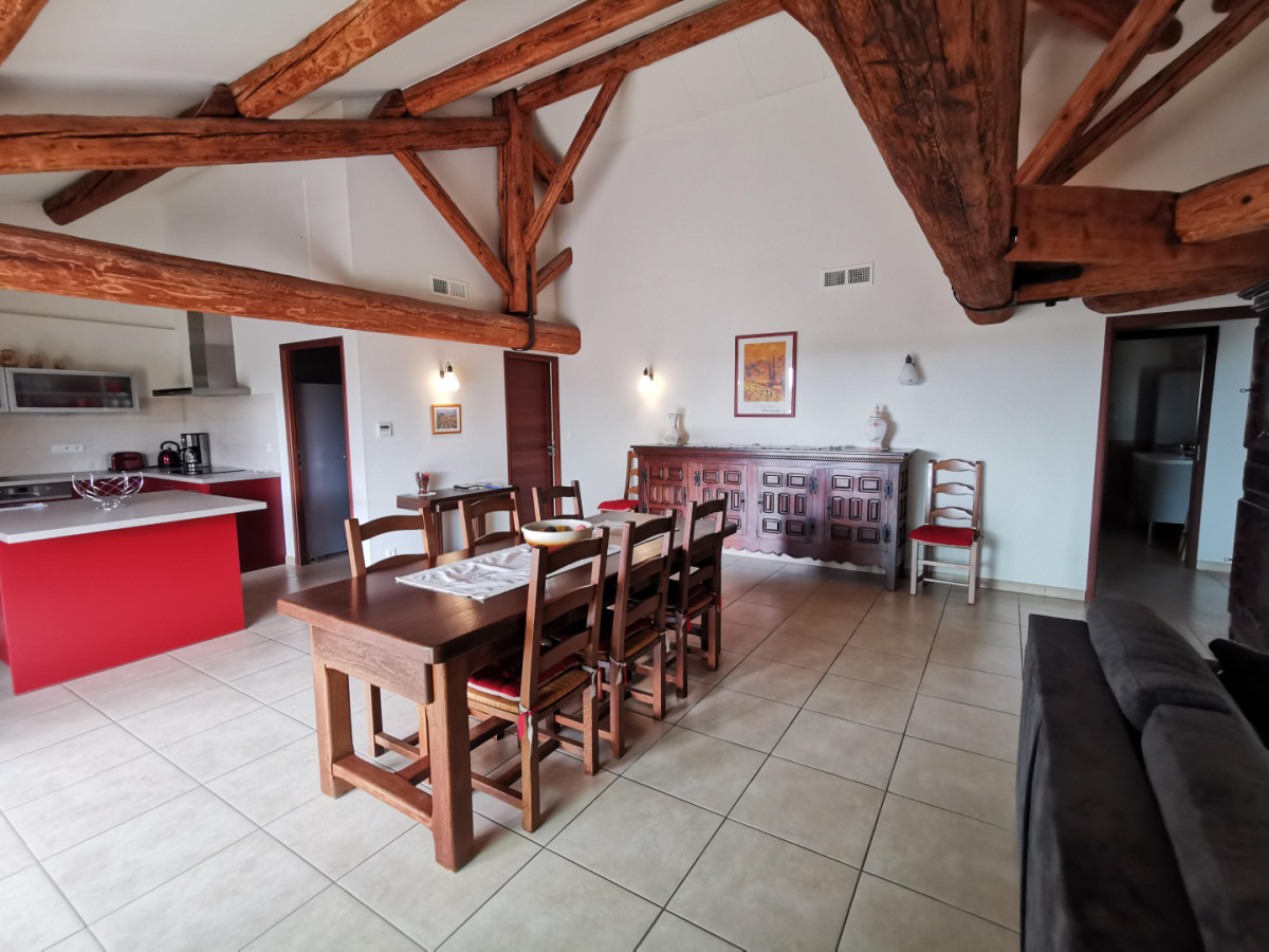 Ce gîte de 120 m², mitoyen à la maison des propriétaires est aménagé au 1er étage (avec un ascenseur). L’hébergement est entièrement aménagé aux personnes à mobilité réduite. Vous y trouverez une grande pièce à vivre de 45m² avec espace cuisine/salle à manger/salon, 1 chambre (1 lit 2 personnes) avec salle d’eau/wc attenants, 1 chambre (1 lit 160X200cm), 1 chambre (2 lits 1 pers.) avec dressing, salle d’eau/wc. Vous profiterez également d’une terrasse privative de 43m² bien équipée (salon de jardin, barbecue ) ainsi que d’un jardin de 100m². Une piscine de 3,5*7mètres (1,40m de profondeur), commune avec les propriétaires, sera à disposition des vacances de printemps à fin octobre (selon météo). Une place de parking privative (et à l’intérieur de la propriété) vous sera réservée. Chauffage climatisation réversible, draps et linge de toilette fourni, ménage fin de séjour inclus, matériel bébé sur demande. ATTRAITS TOURISTIQUES : Valras-Plage et sa large plage de sable fin, Béziers, le Canal du Midi classé au Patrimoine mondial de l’Unesco, l’Oppidum d’Ensérune, Pézenas (ville d’art où vécut Molière), Narbonne, Carcassonne. Idéal pour les amoureux des randonnées pédestres, du VTT ou des sports nautiques !