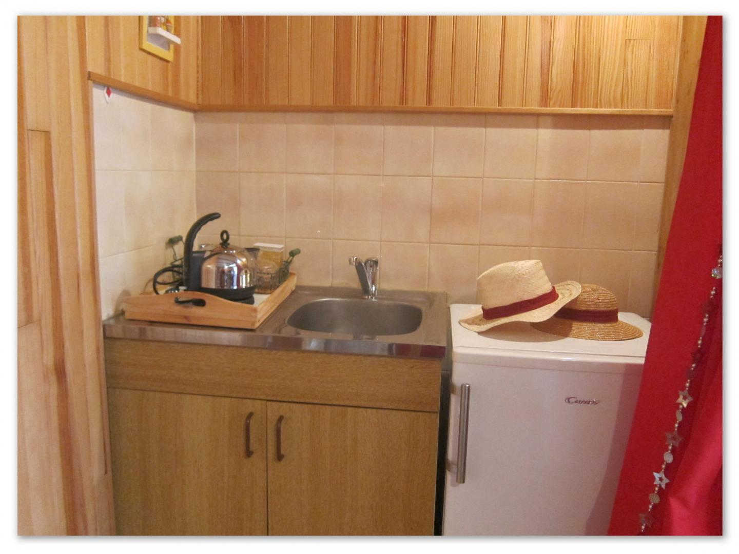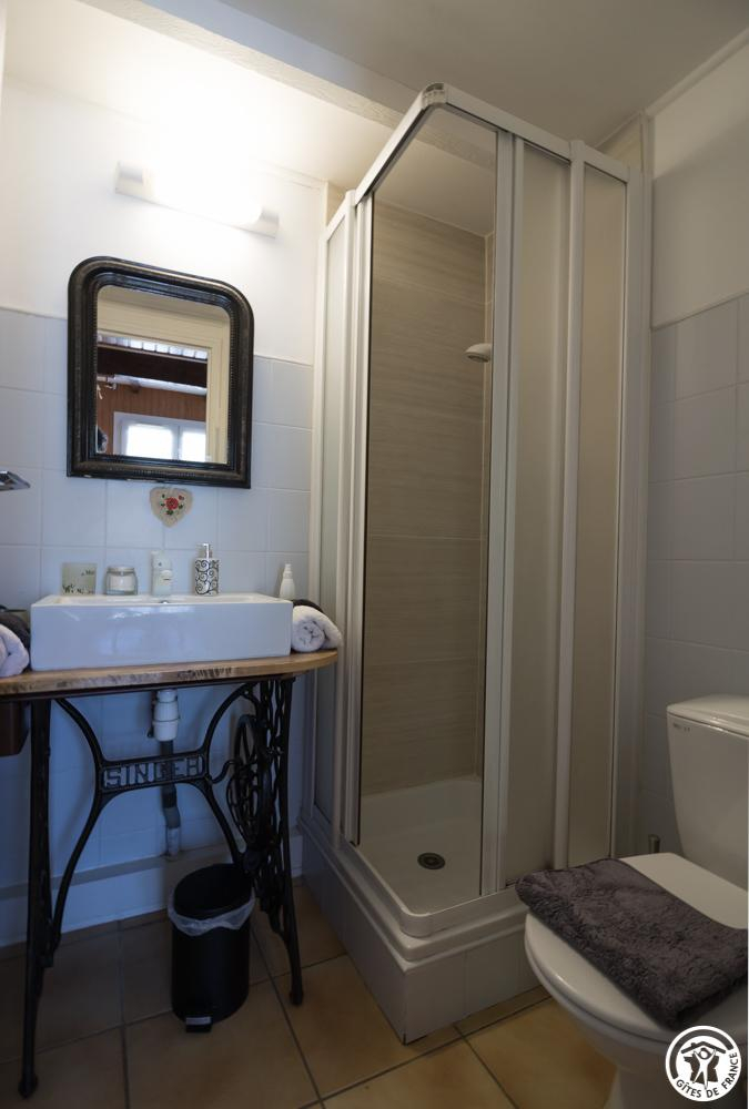 La chambre de plain pied bénéficie d’un accès indépendant (1 lit 2 personnes en 140cm + petite salle d’eau privative et attenante avec WC (cabine de douche)). Réfrigérateur table top, bouilloire électrique, micro-ondes, accès Internet wifi.
